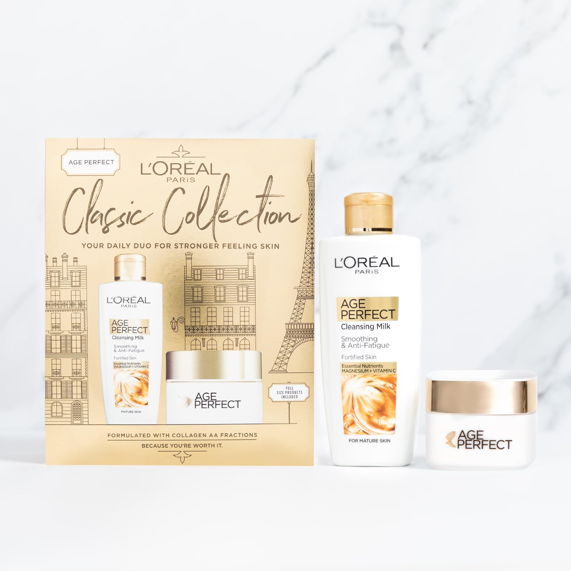 - Contents: 1x L’Oréal Paris Classic Collection, Age Perfect Collagen Anti-Ageing Routine For Smoothing and Retightening