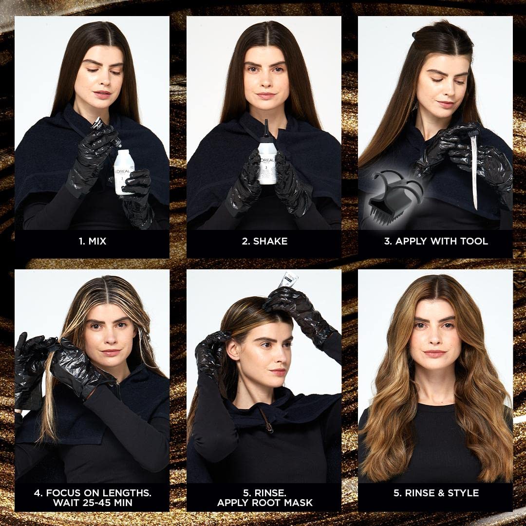 L’Oréal Paris Luminous Graduation Ombré Kit, Shade 104 for Brown to Dark Brown Hair, Anti-brass Care, Expert Brush Included, Preference Techniques Les Ombrés, 1 Application