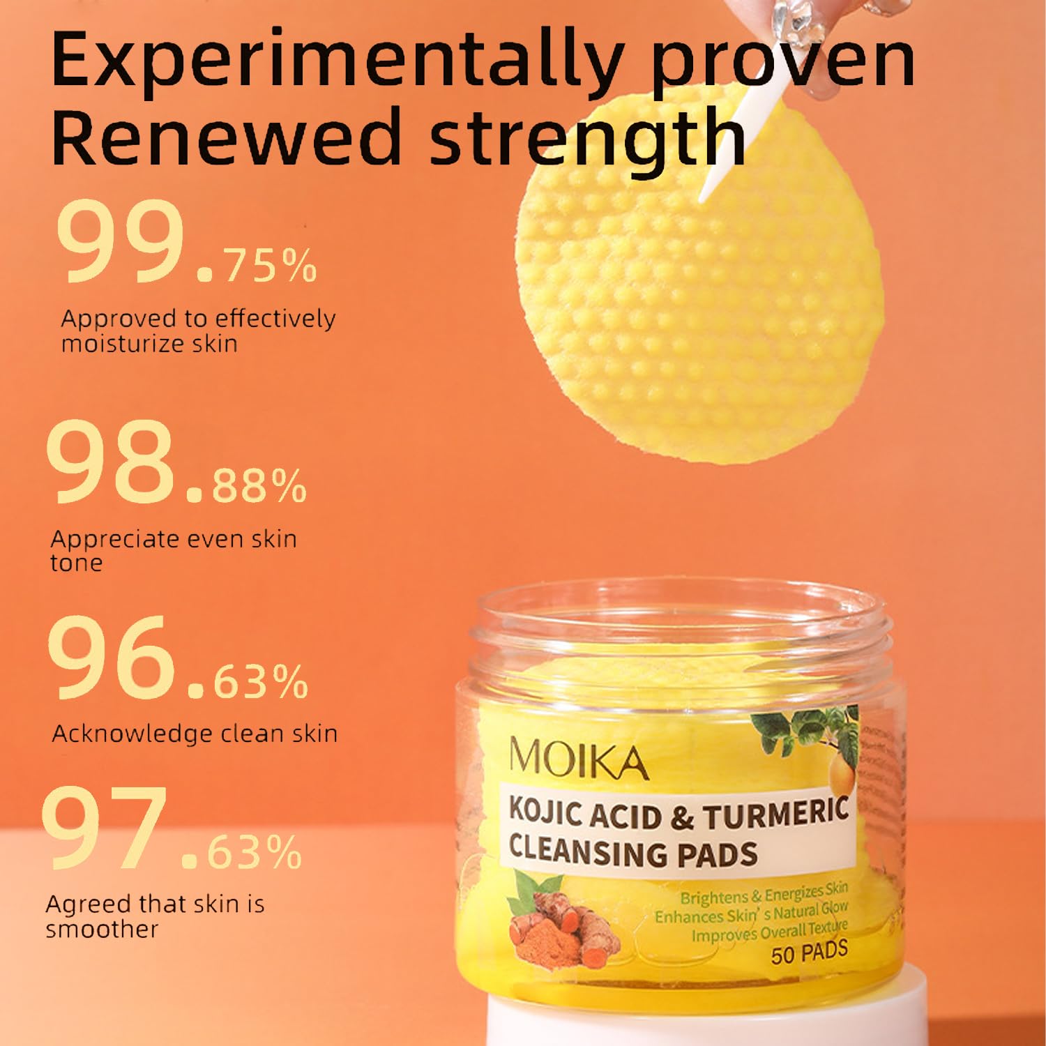 L0famy 50Pcs Turmeric Kojic Acid Pads, Exfoliating Face Cleansing Cotton Pads, Kojic Acid and Turmeric Pads, for Face, Body, Acne, Dark Spots, Hyperpigmentation, Smooth Skin