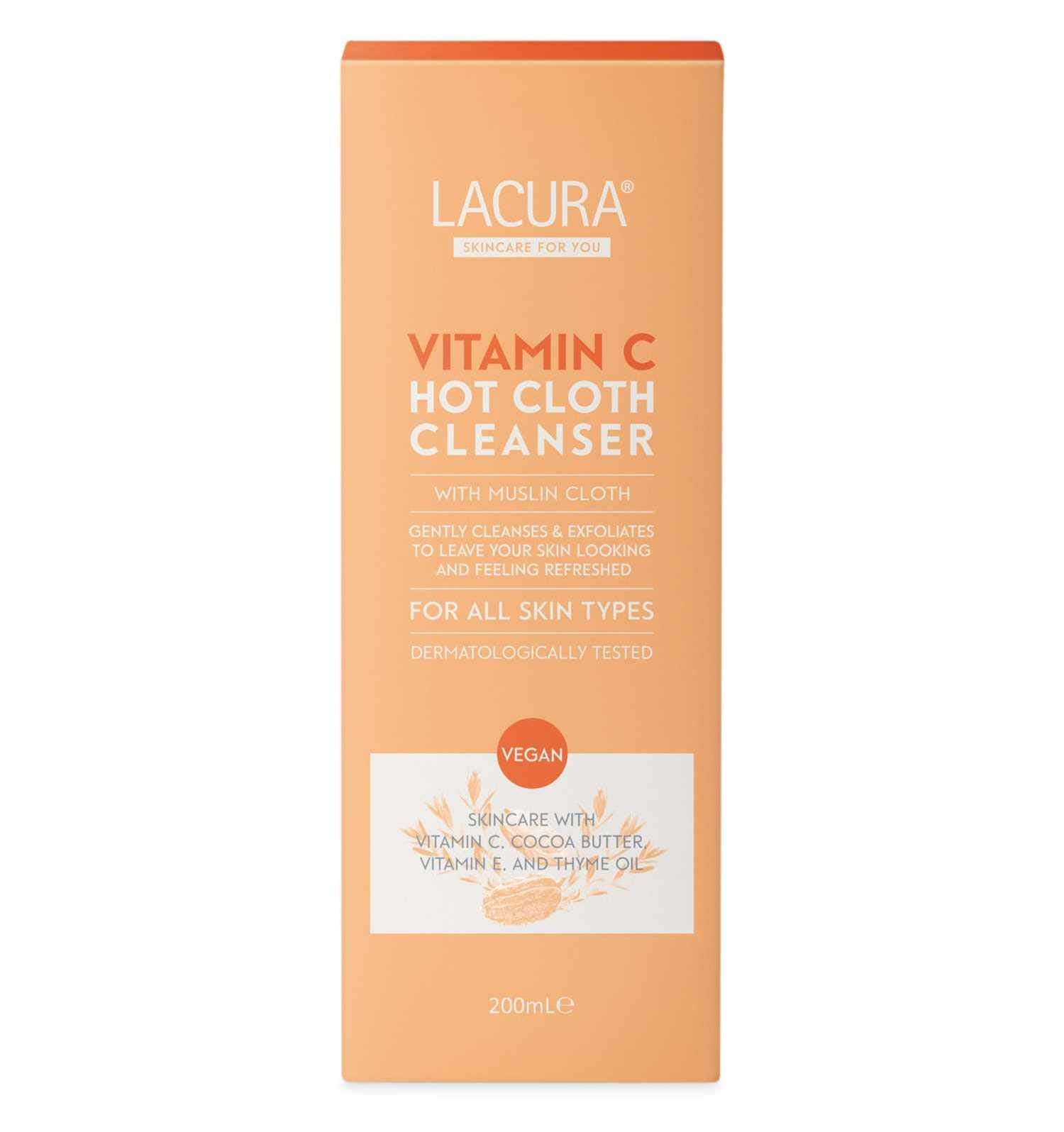 Lacura Vitamin C Hot Cloth Cleanser with Muslin Cloth 200ml | Removes Make Up | Gently Cleanses & Exfoliates | All Skin Types | For Sensitive Skin | Vegan Skincare