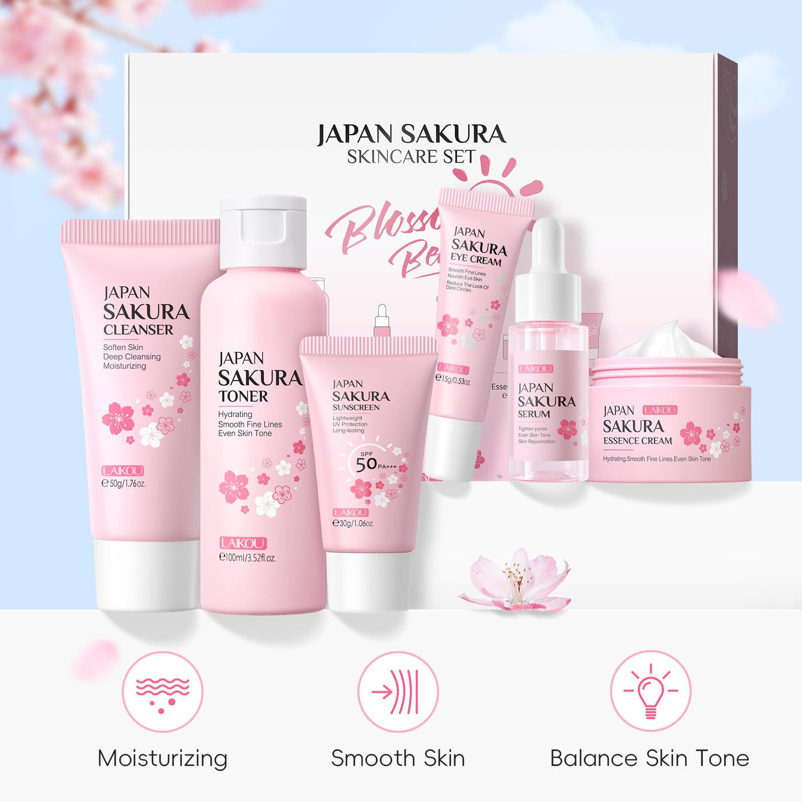 LAIKOU JAPAN SAKURA Skincare set 6pcsFeatures:Hydrating/Smooth Fine Lines/Even Skin Tone/Heal Dry Skin