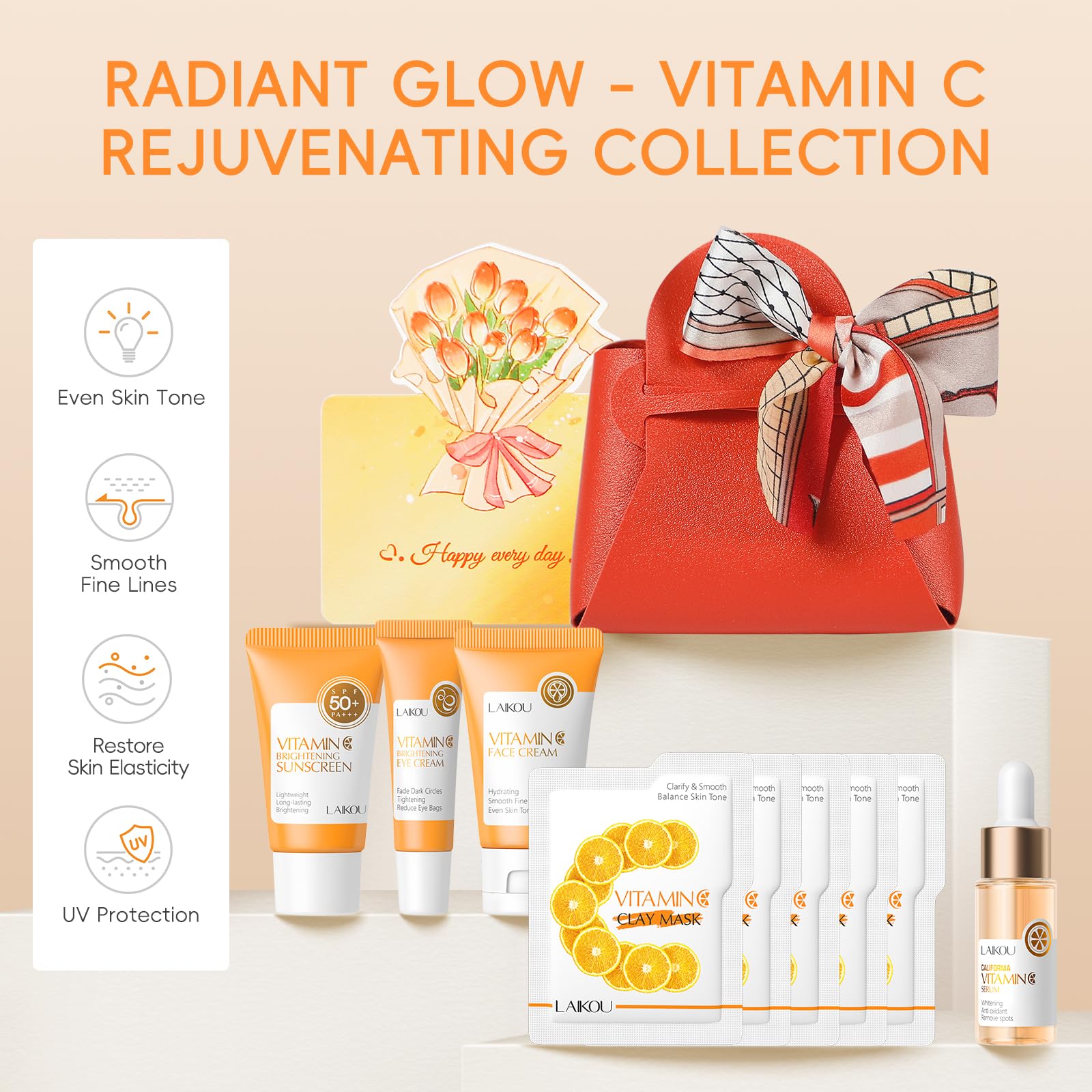 LAIKOU Vitamin C Skincare Gift Set – Hydration, Radiance & Antioxidant ProtectionLAIKOU Vitamin C Skincare Set combines a serum, eye cream, face cream, sunscreen, clay mask, and more, offering a complete daily routine for smooth, firm, and glowing skin. Suitable for all skin types.