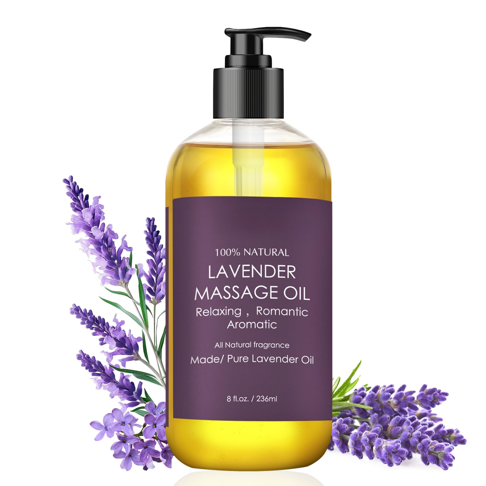 Lavender Massage Oil for Relaxing Muscles - Lavender Massage Oil Body,Hand,Leg,Foot - Body Oil for Relief Skin - Lavender Oil Moisturizer for Women,Men Skin Care (236ml)