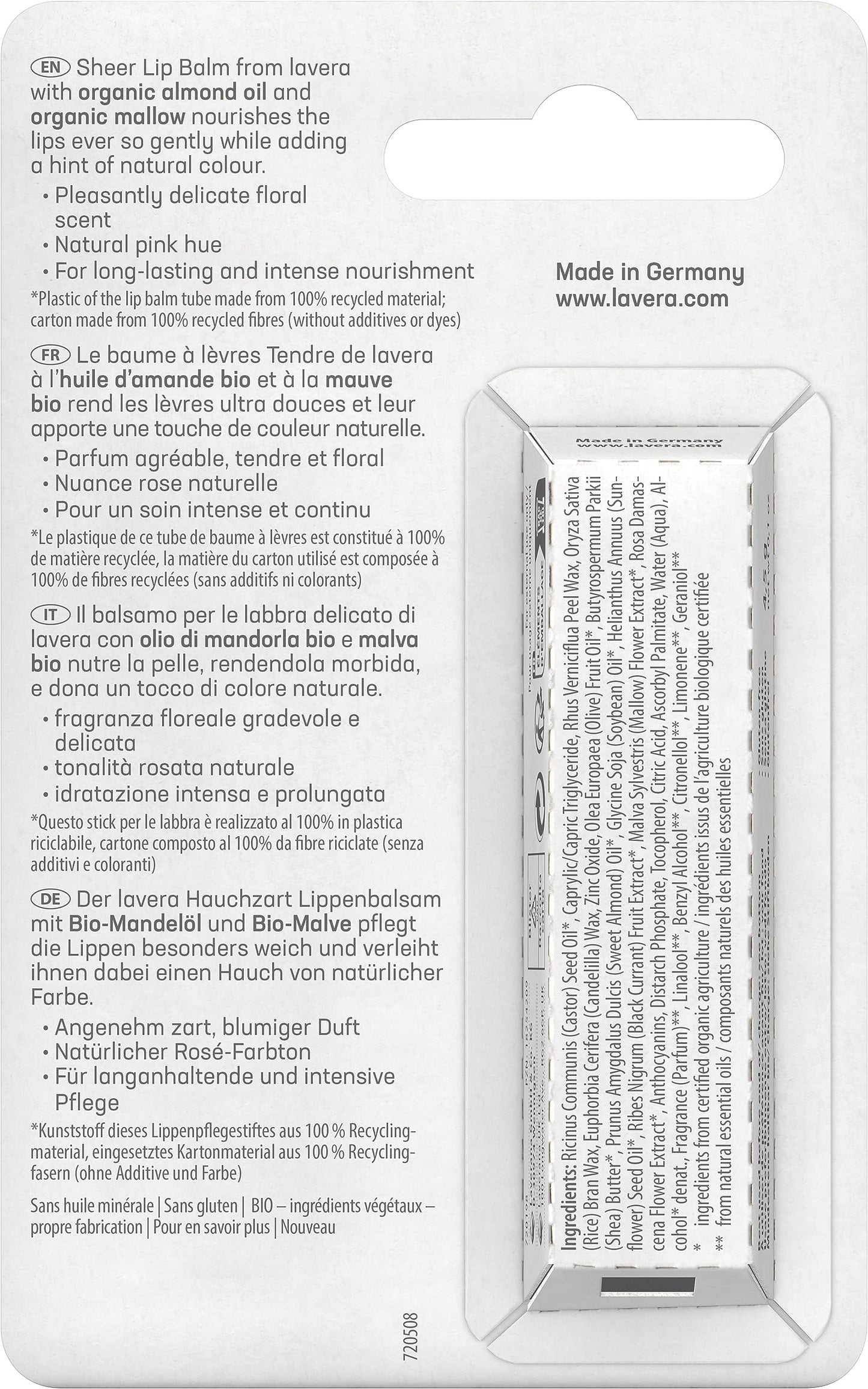 lavera Sheer Lip Balm - for long-lasting and intensive care - strengthens skin barrier - with organic almond oil & organic mallow - vegan