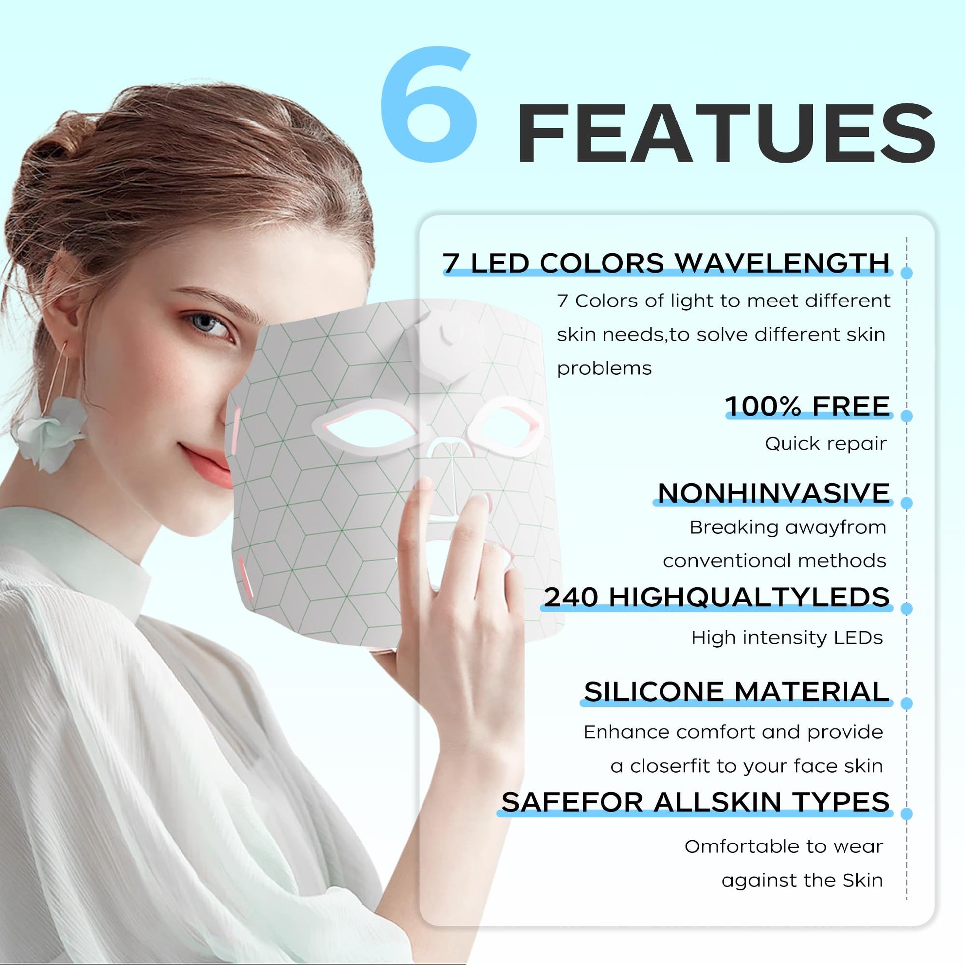 LED Face Mask, Professional Red Light Therapy Mask for Face, Multi-light Modes Skincare at Home, Infrared Face Mask Light Therapy for Acne, Wrinkles, Skin Rejuvenation (White(7 Light Modes))