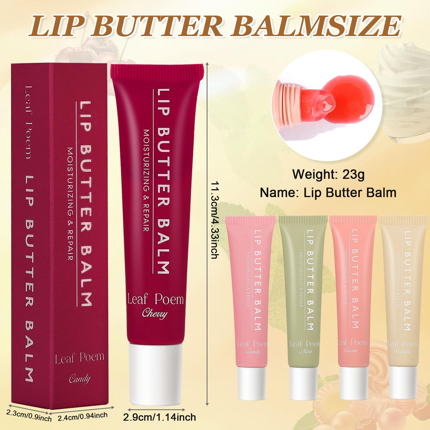 Ledeak Summer Lip Balm, 4PCS Summer Lip Butter Balm, Nourishing Glossier Lip Balm, Plumping Tinted Lip Butter, Moisturizing Natural Lip Gloss Set for Men Women Chapped Lips (Vanilla+ Candy+Mint+Cream)