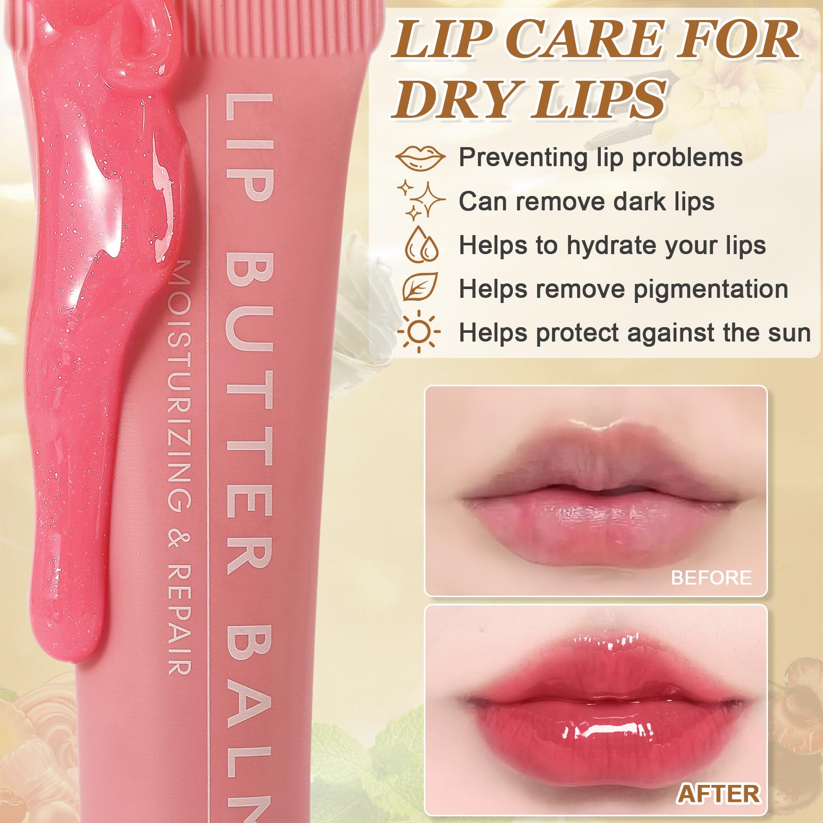 Ledeak Summer Lip Gloss – the perfect fusion of lip care and beauty!Choosing our lip care for dry lips is choosing a natural, safe and effective way to care for your lips. With its rich color and moisturizing texture, it will allow your lips to enjoy beauty while being carefully cared for, making your lip butter balm process full of pleasure and satisfaction.