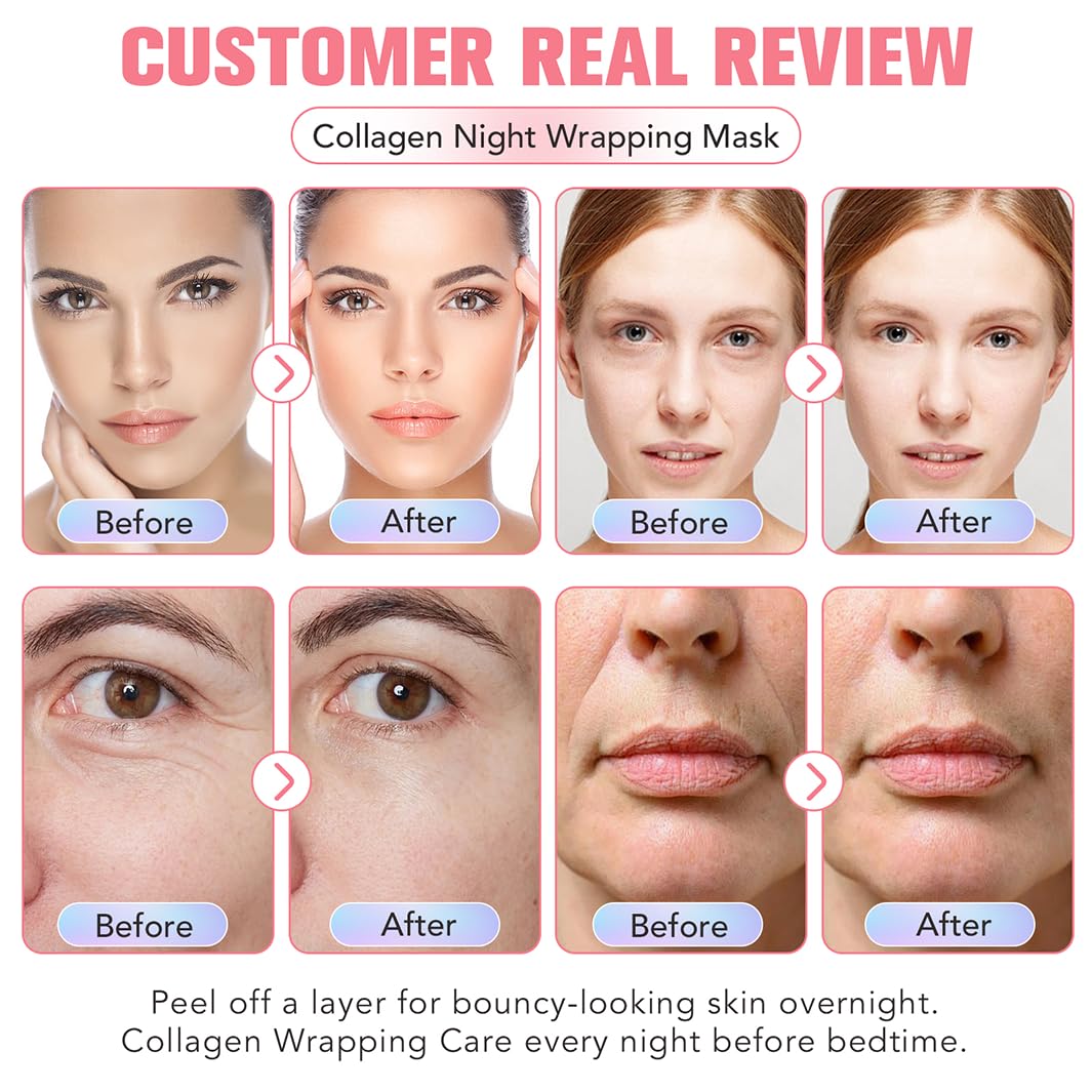 LEHYUKT Collagen Night Repair Mask, Night Wrap Mask + Cleansing Brush, Peel Off Face Masks, For Dry and Dehydrated Skin - Deep Moisturizing Treatment, Reduces Wrinkles and Dullness, Improves Skin Elasticity