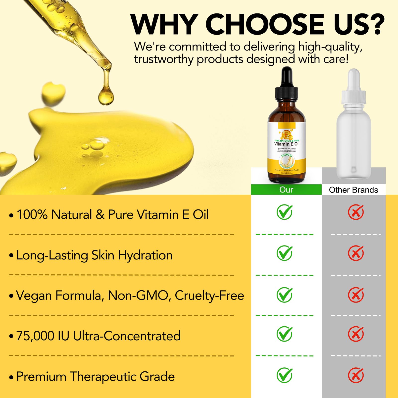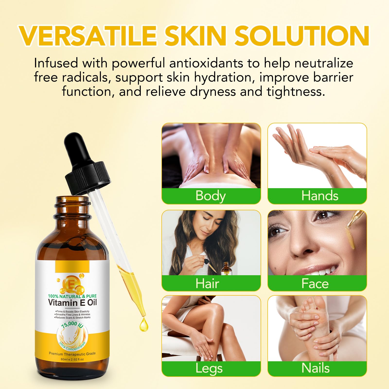 LEISGOTO Vitamin E Oil, 100% Pure Natural Plant Extracts Vitamin E Oil for Skin, Face, Reduces Scars & Stretch Marks, Smooths Fine Lines & Wrinkles, Firms & Boosts Skin Elasticity - 60ml Body Oil (Pack of 1)