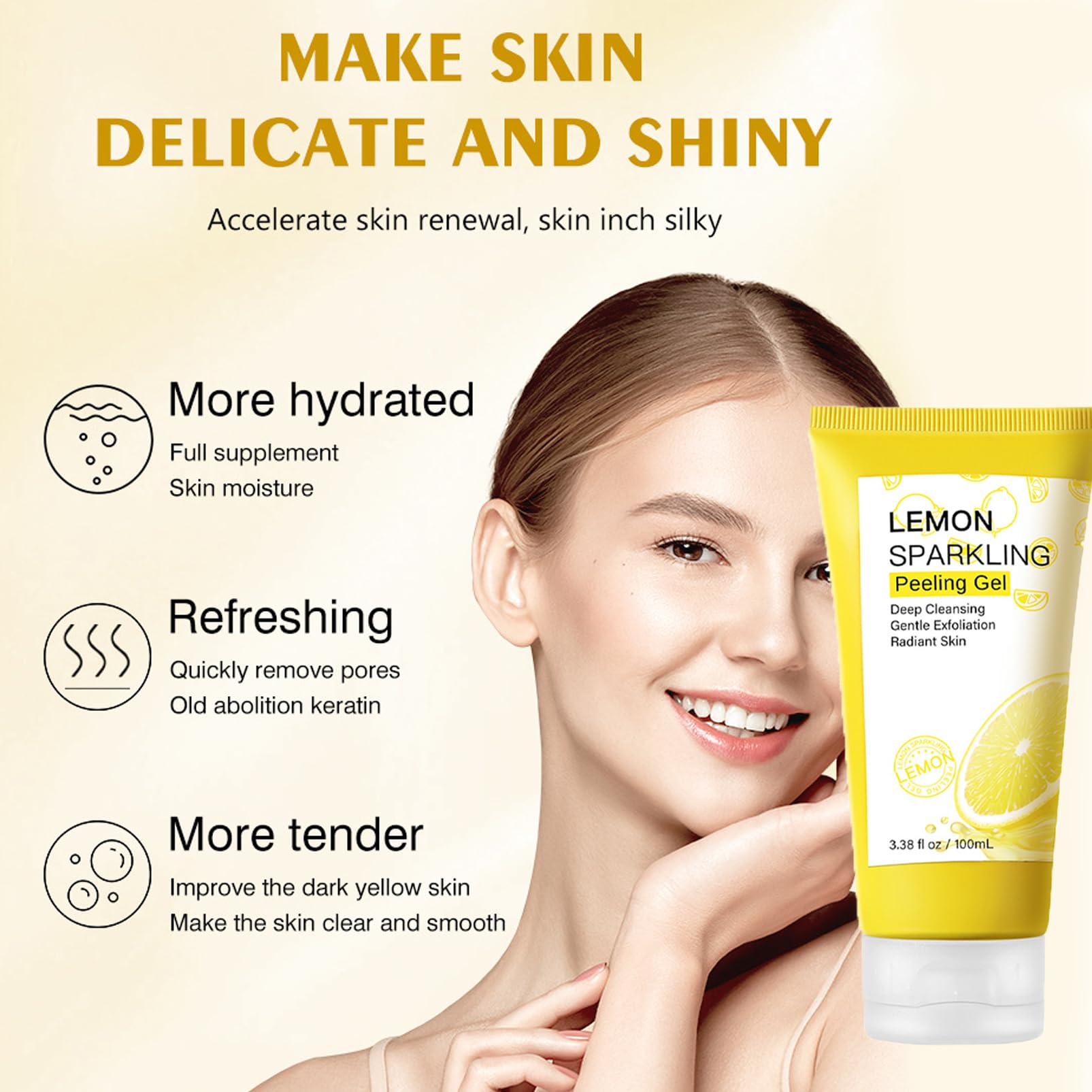 Lemon Exfoliating Gel,Lemon Peeling Gel,Vitamin C Face Scrub,Soft your Skin & Remove Dead Skin,Natural Face Scrub Exfoliator for Blackhead,Mild Face Exfoliator Scrub for Radiant Skin,Face & Body &Knee