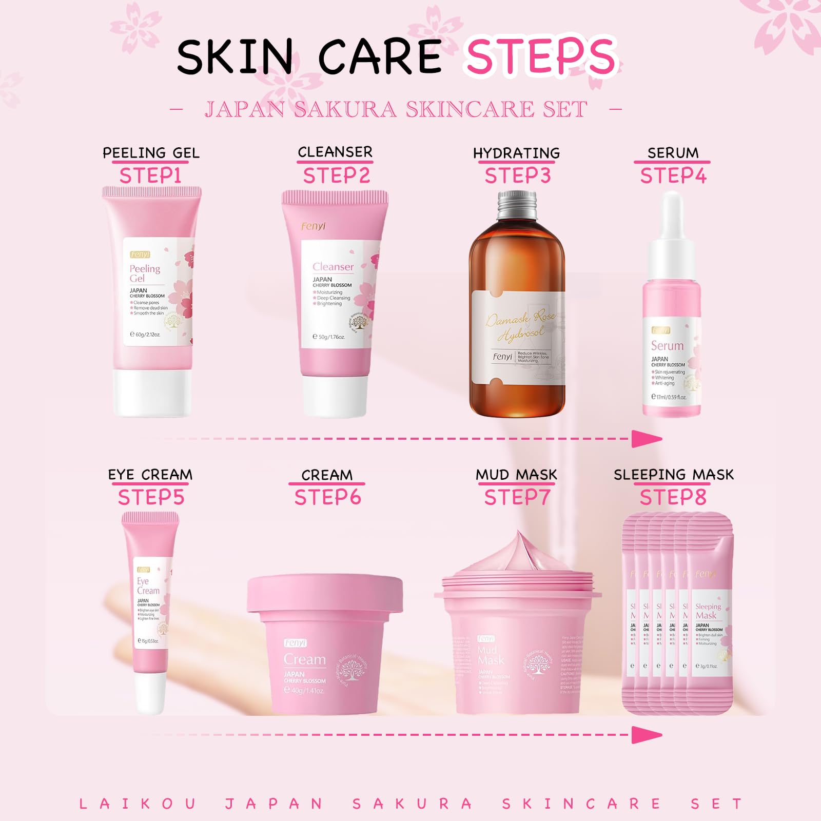 Leogony 13pcs Skincare Set for Teenagers Girls Kids, Cherry Blossom Gifts Skin Care Sets & Kits