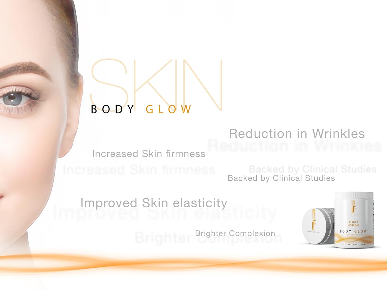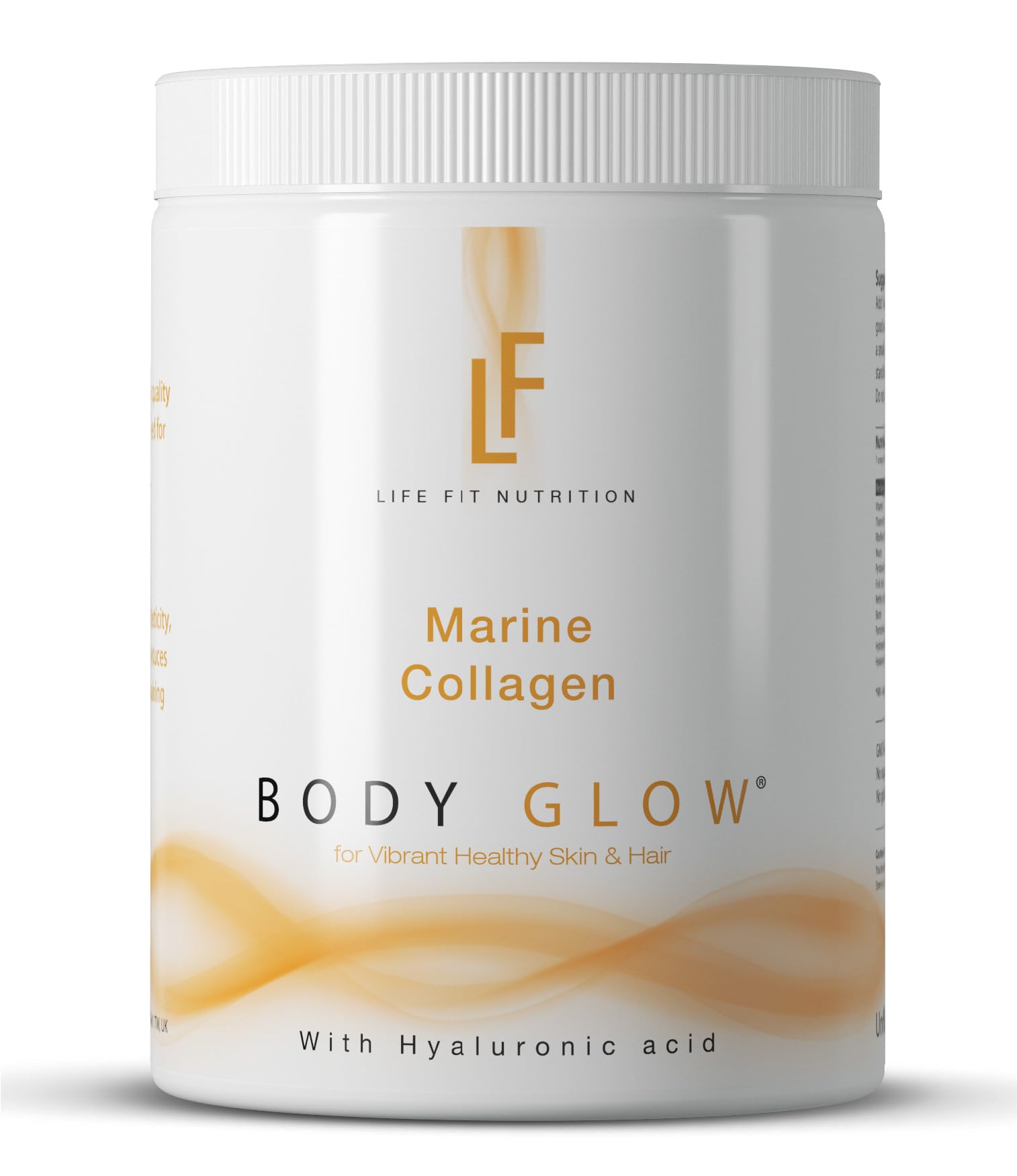Product Overview Collagen Powder 300g. Food Supplement providing Marine Collagen, Hyaluronic Acid, Vitamin C and B Vitamins. Easy to take, drink. Hyaluronic Acid Our Hyaluronic Acid (HA) is Sodium hyaluronate - the salt form of HA and is a water-soluble salt that holds 1000 times its weight in water. This way the HA is more stable and less likely to oxidise. Sodium hyaluronate has a much lower molecular size than standard HA, which allows it to penetrate better. The Marine Collagen used in BODY GLOW is a fish collagen peptide, produced by enzymatic hydrolysis. It is a mixture of peptides with various molecular weights including some dipeptides and tripeptides. It is made from fish skin and scales. Using Naticol in our product has the following advantages over other collagen sources: Bioavailability: provides the appropriate amino acids which make up the collagen in the body. The low molecular weights grades allow absorption into the bloodstream after digestion. Sustainability: is made from the skins and scales of fish that would otherwise be discarded in the fillet process. Quality and traceability: is produced in Europe under ISO 9001 and ISO 22000 standards. Safety: The ionic demineralization and filtrations assure the maximum purity and a high collagen ratio (98% - 99% on a dry matter basis). Sterilization guarantees low bacteria. Relevant EFSA Approved Health Claims available: Amongst the other vitamins, our product contains: - Vitamin C which contributes to normal collagen formation for the normal function of skin, bones and cartilage. - Riboflavin, Biotin & Niacin which contribute to the maintenance of normal skin. - Biotin, which contributes to the maintenance of normal hair. 10g collagen per serving 300g Powder (29 Servings) Manufactured in the UK to the GMP code of practice. These procedures ensure that the basic manufacturing practices and prerequisites necessary for product quality and safety are being followed so that we can guarantee you receive consistently high quality products.More Info