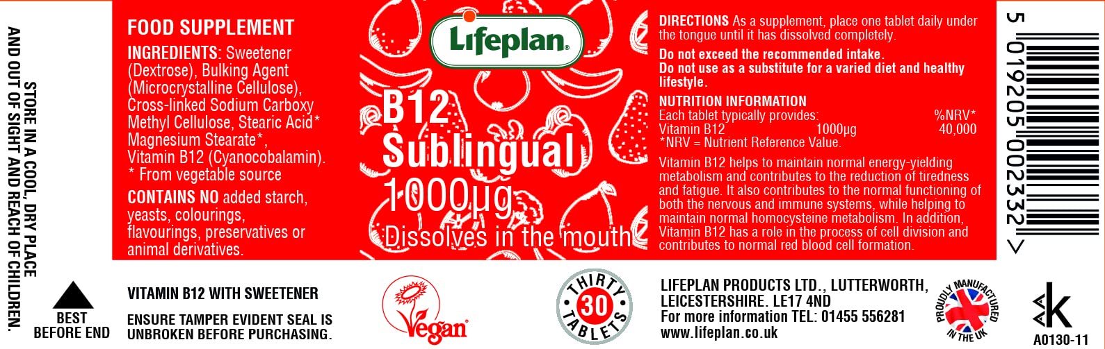 - Lifeplan B12 tablets to maintain normal energy production, and helps reduce tiredness & fatigue