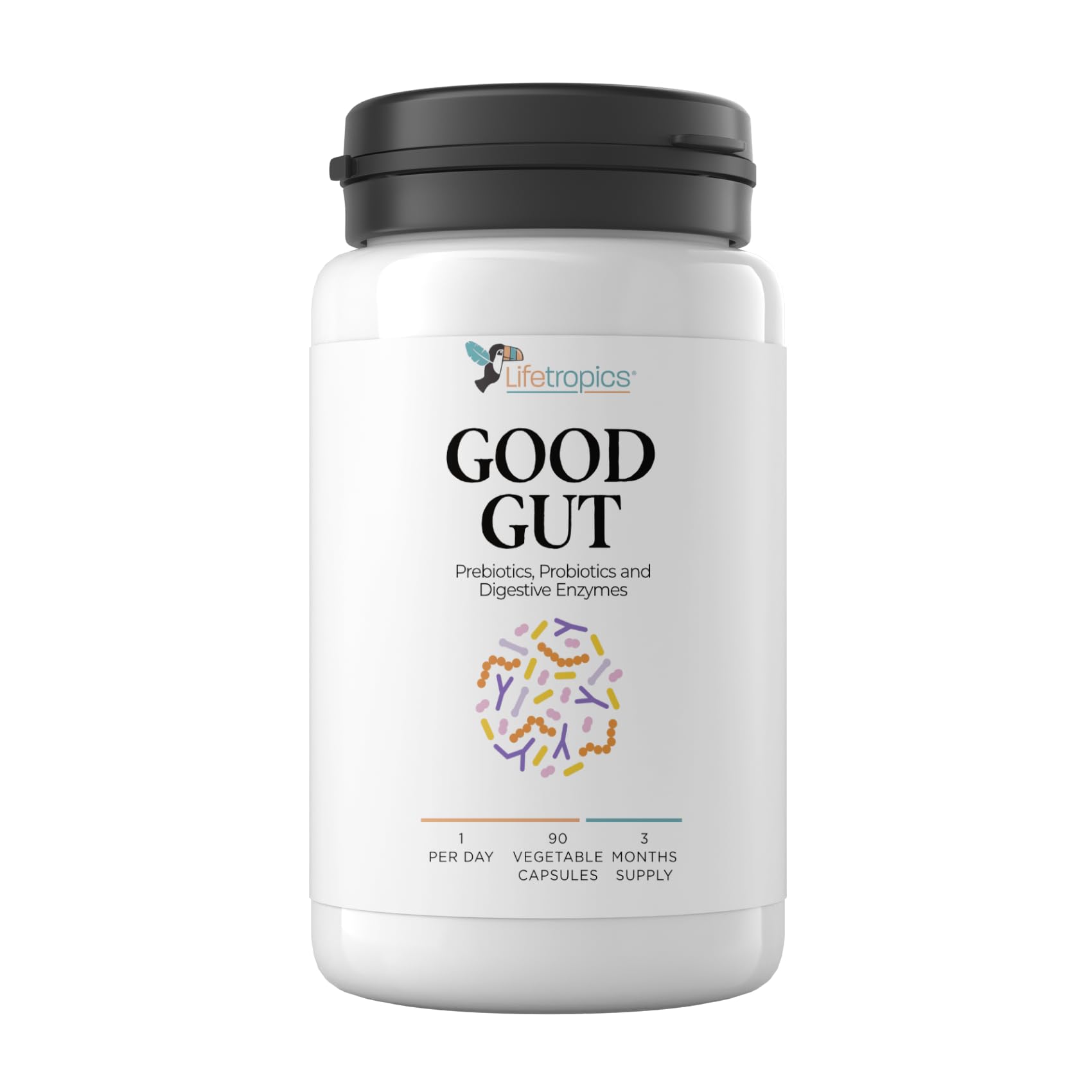 Lifetropics Good Gut | Prebiotics, Probiotics and Digestive Enzymes for Digestion and Complete Gut Repair | 90 Vegetable Capsules | 3 Months Supply