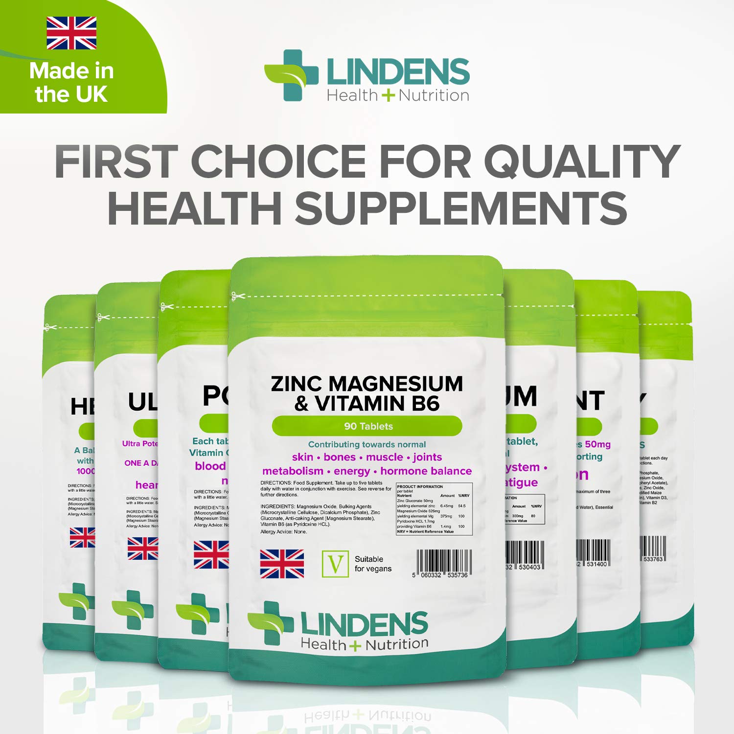Lindens Zinc, Magnesium and Vitamin B6 Complex Tablets - 90 Pack - Reduction of Tiredness and Fatigue - UK Manufacturer, Letterbox Friendly