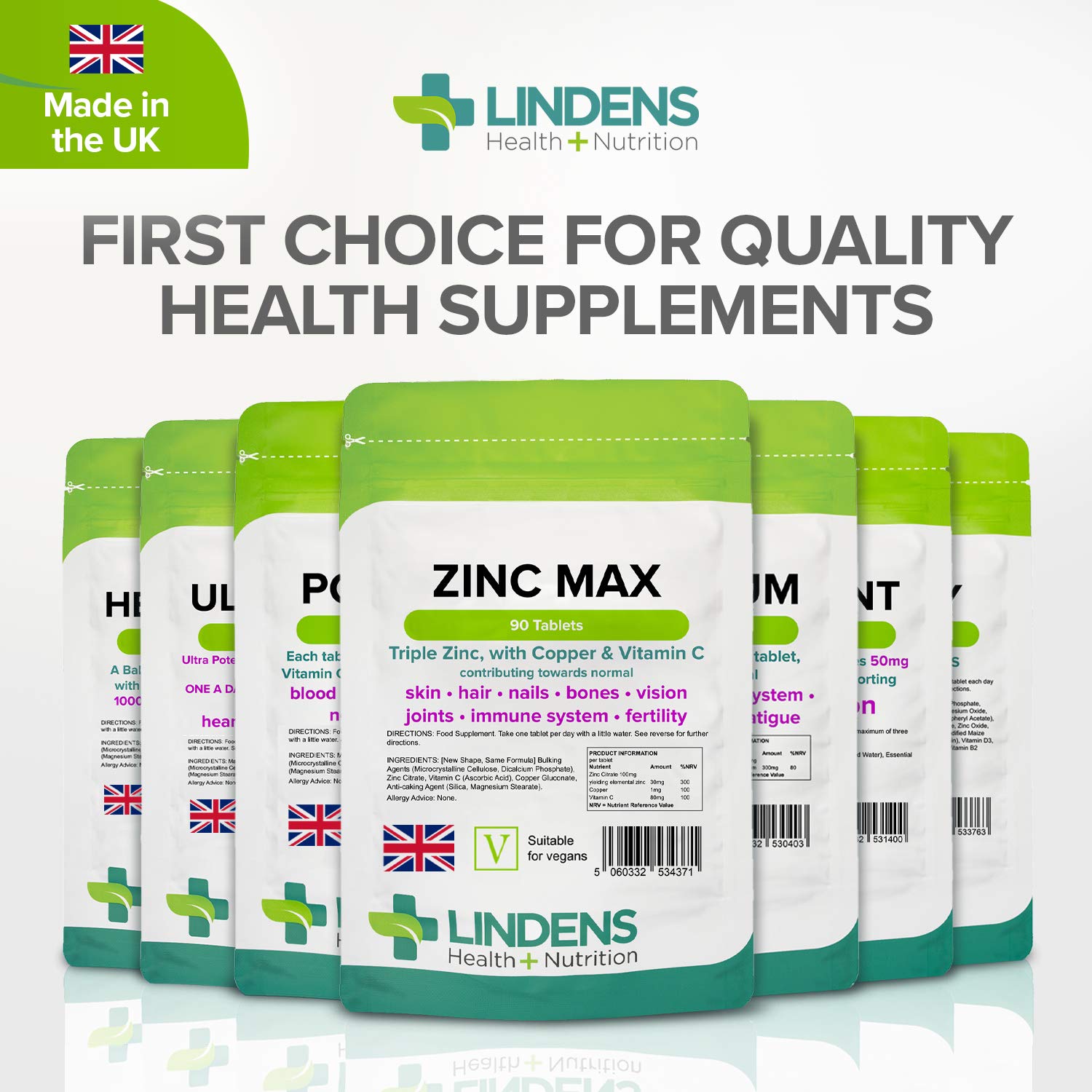 - TRIED & TRUSTED QUALITY — Lindens Health + Nutrition is leading the way in consumer nutrition supplements. Our Zinc Max tablets are packaged in foil-fresh, resealable and light-proof pouches and manufactured in the UK!