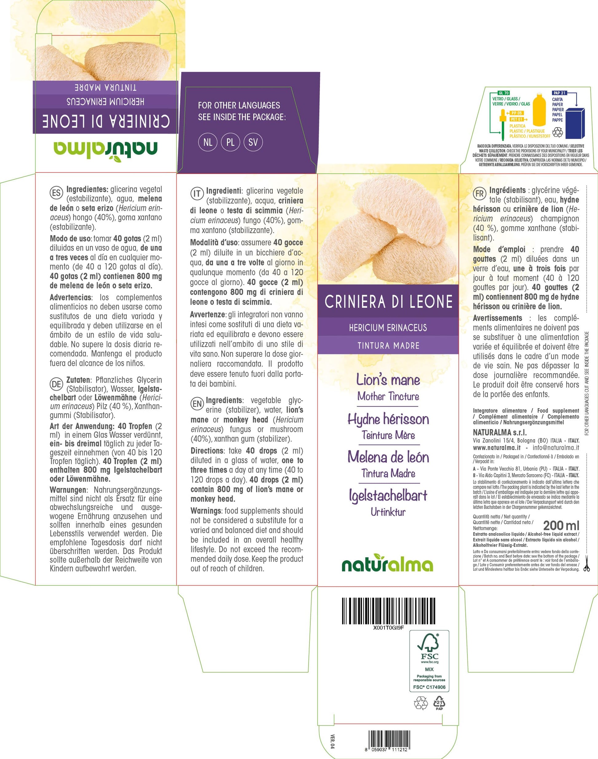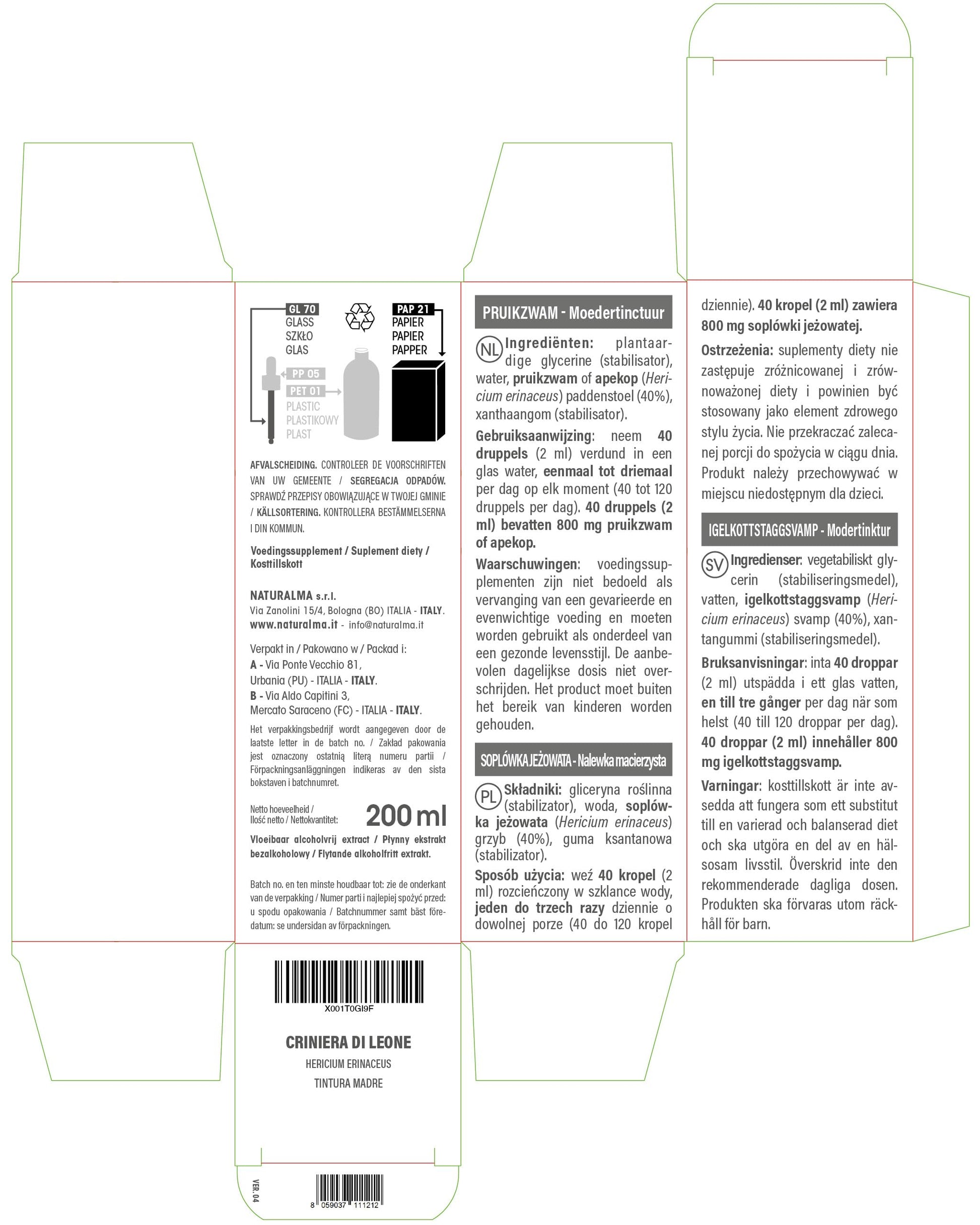 Lion's Mane or Monkey Head (Hericium erinaceus) Fungus or Mushroom Alcohol-Free Mother Tincture Naturalma | Liquid Extract Drops 200 ml | Food Supplement | Vegan