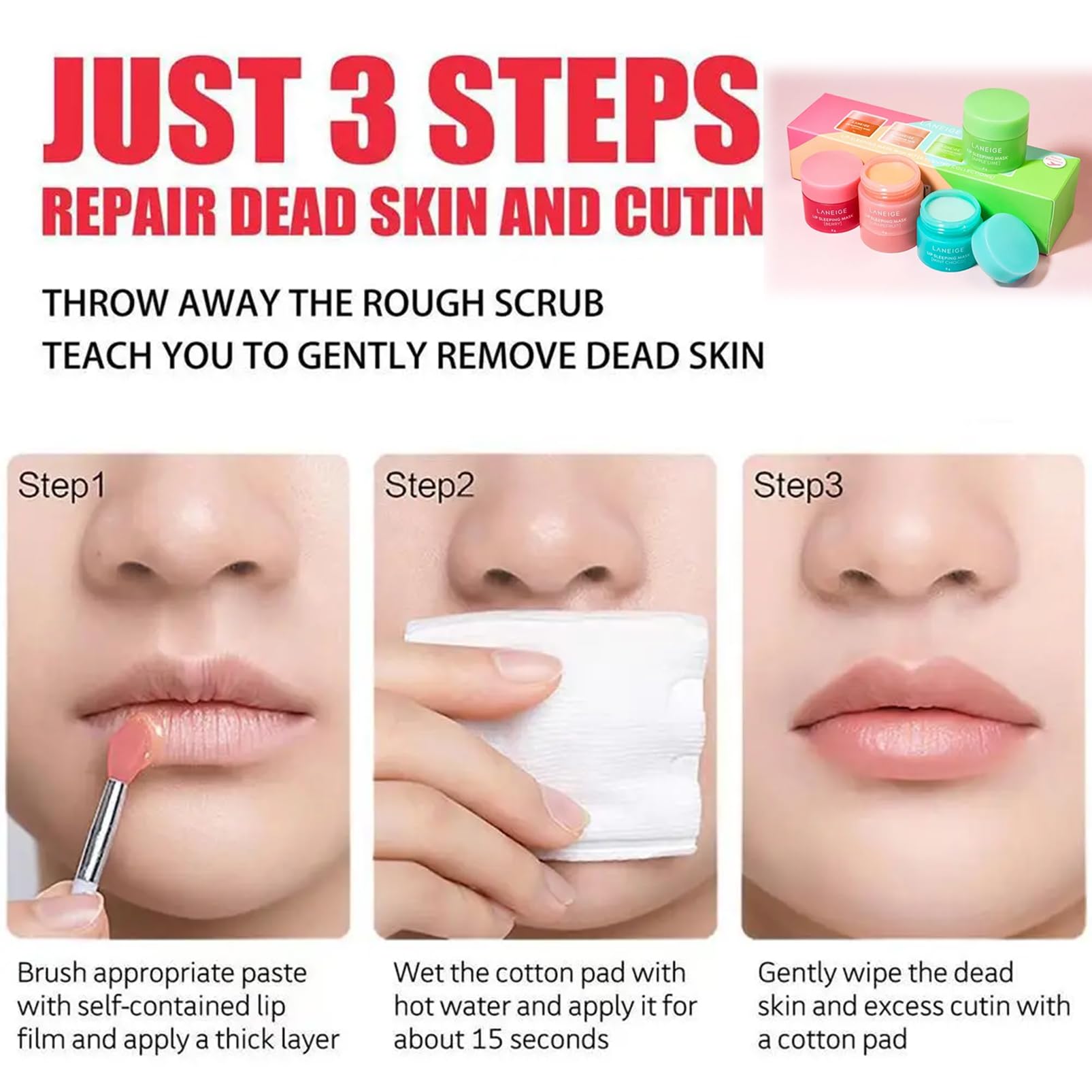 1.Formulated with a special Moisture-Wrap technology, this lip mask delivers deep hydration to keep lips soft and smooth.