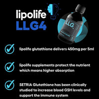 lipolife Liposomal Glutathione Setria. Highly Absorbable. Made in UK. Vegan. 48 Servings. Unflavoured. LLG4.