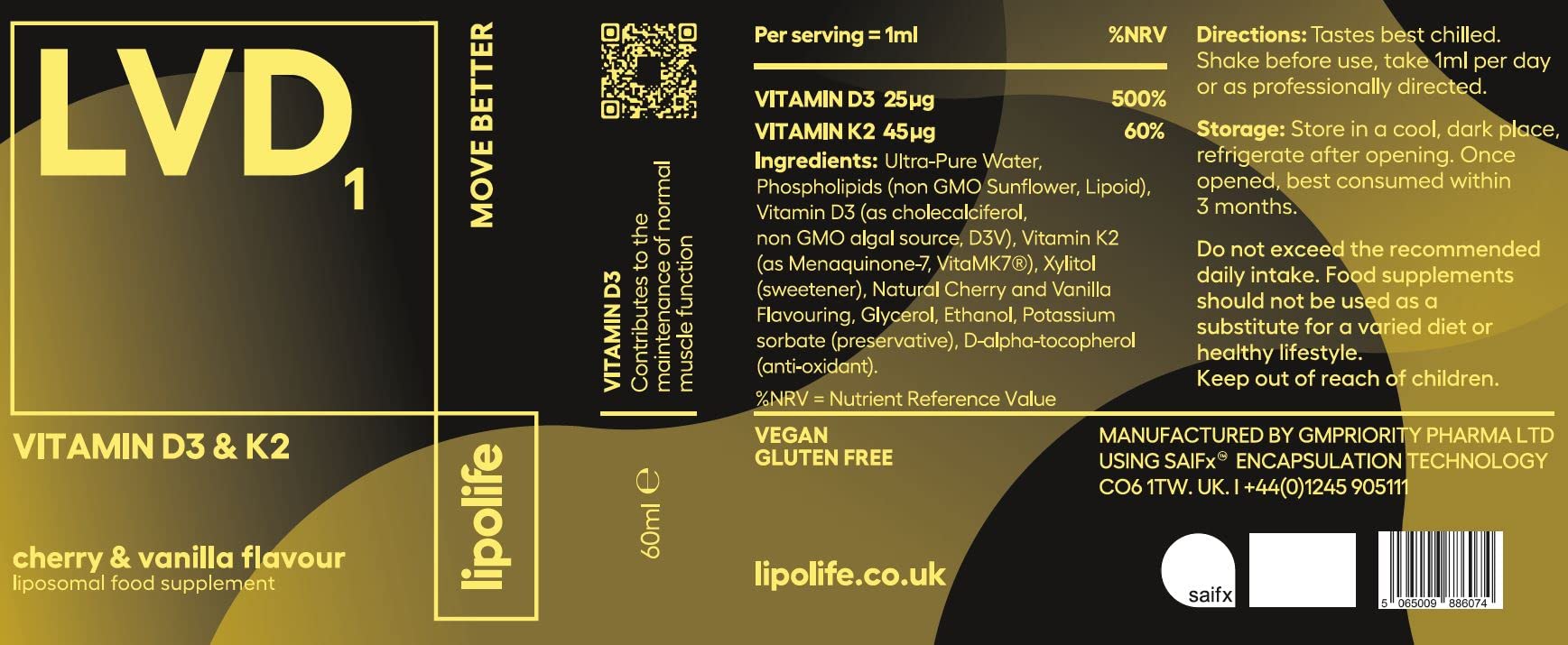 Lipolife LVD1 - Liposomal Vegan Vitamin D3 and Vitamin K2 - Cherry & Vanilla Flavour 60ml - lipolife