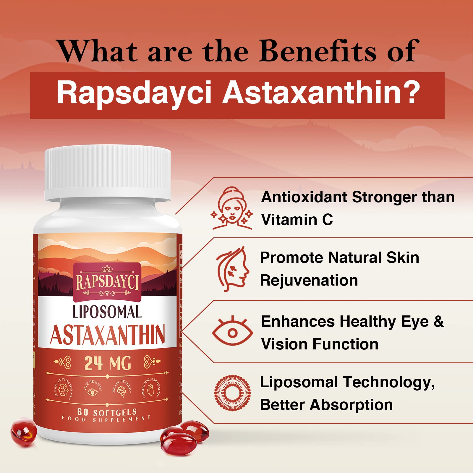 Liposomal Astaxanthin Supplement 24mg Per Serving, Powerful Antioxidant Formula Than VIT C, Eye & Immune Health Support, Superior Absorption (180 Count (Pack of 3))