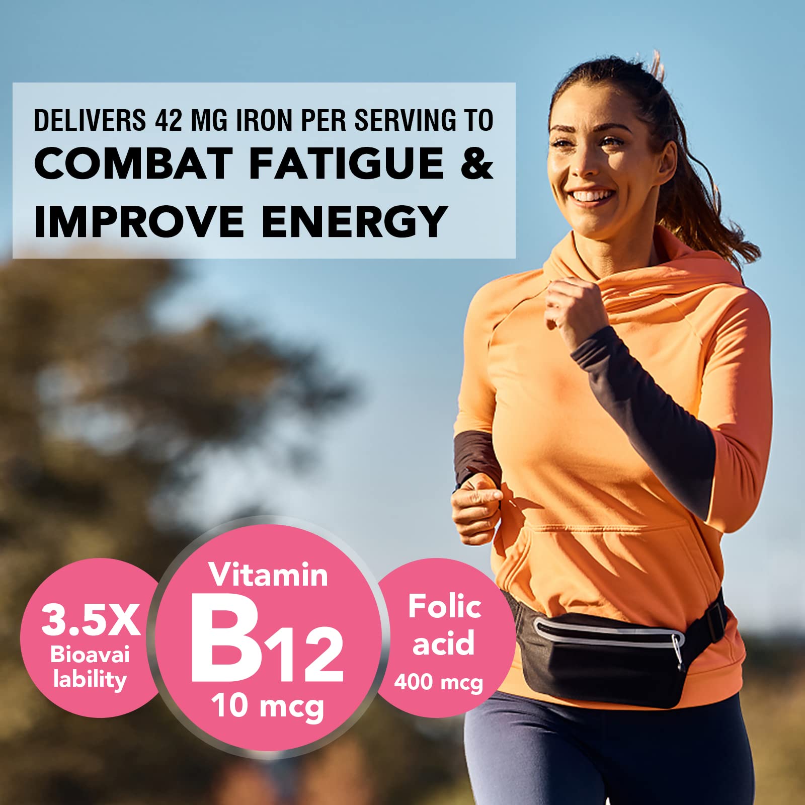 - High Potency Iron Supplement - Contains Liposomal Iron 42 mg (as Ferrous Sulfate) per Iron Softgels, which is enough to meet an adult's daily intake of iron. Infused with Folic acid and Vitamin B12, provides a dietary supplement for those who are Iron deficient. 1 Per Day, 60 Softgels Per Bottle, 2 Months Supply.