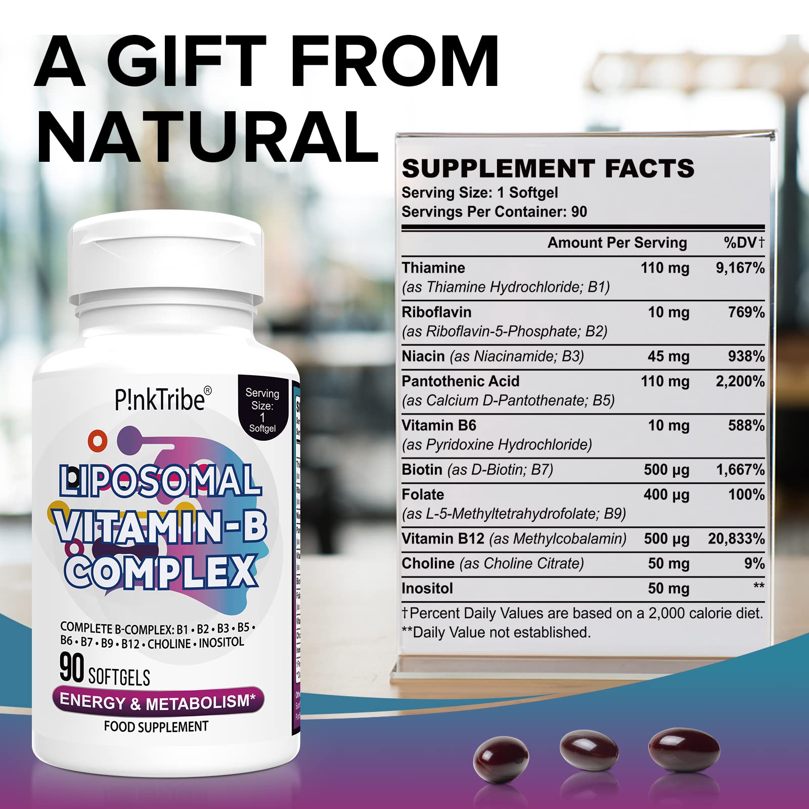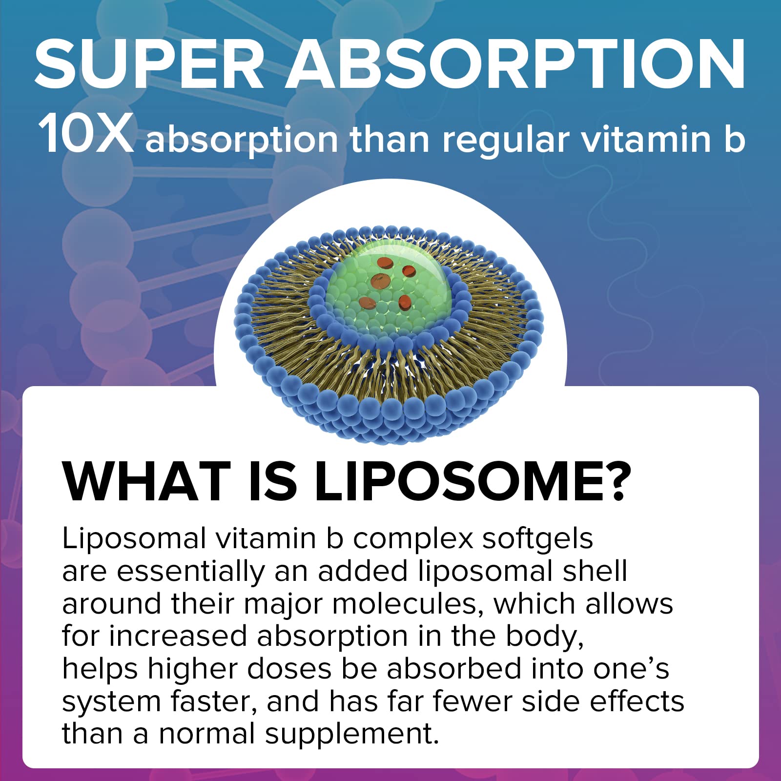 Liposomal Vitamin B Complex Softgels - 9 Methylated B Vitamins for Easily Absorbed, Vitamin B6, Folate & Inositol, 10x Better Absorption, 90-Day Supply, 90 Softgels (Pack of 1)