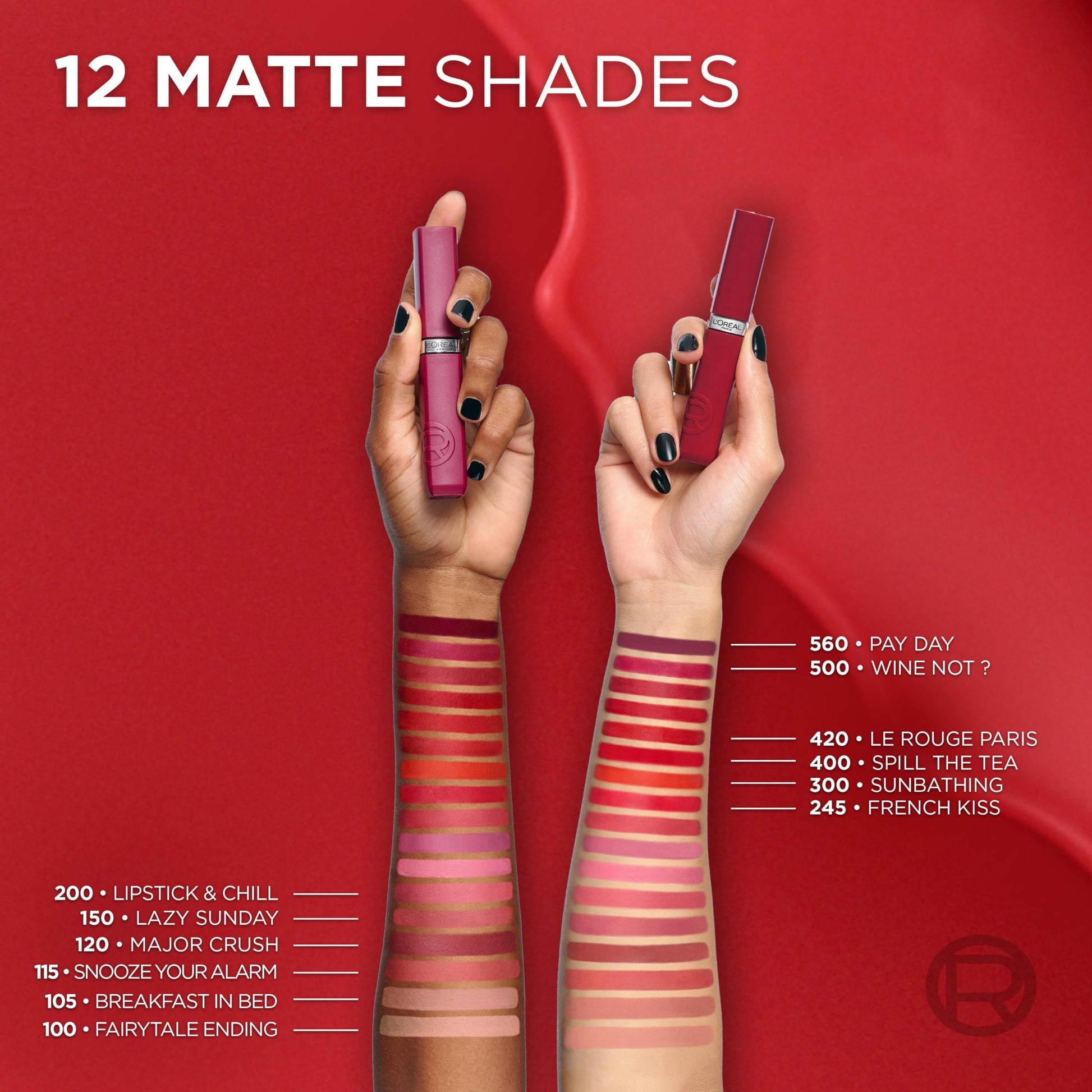 - L'Oreal Paris Infallible Matte Resistance: Ultra-lightweight longwear liquid lipstick with powder pigments, For an intense lip look that’s comfortable all day long