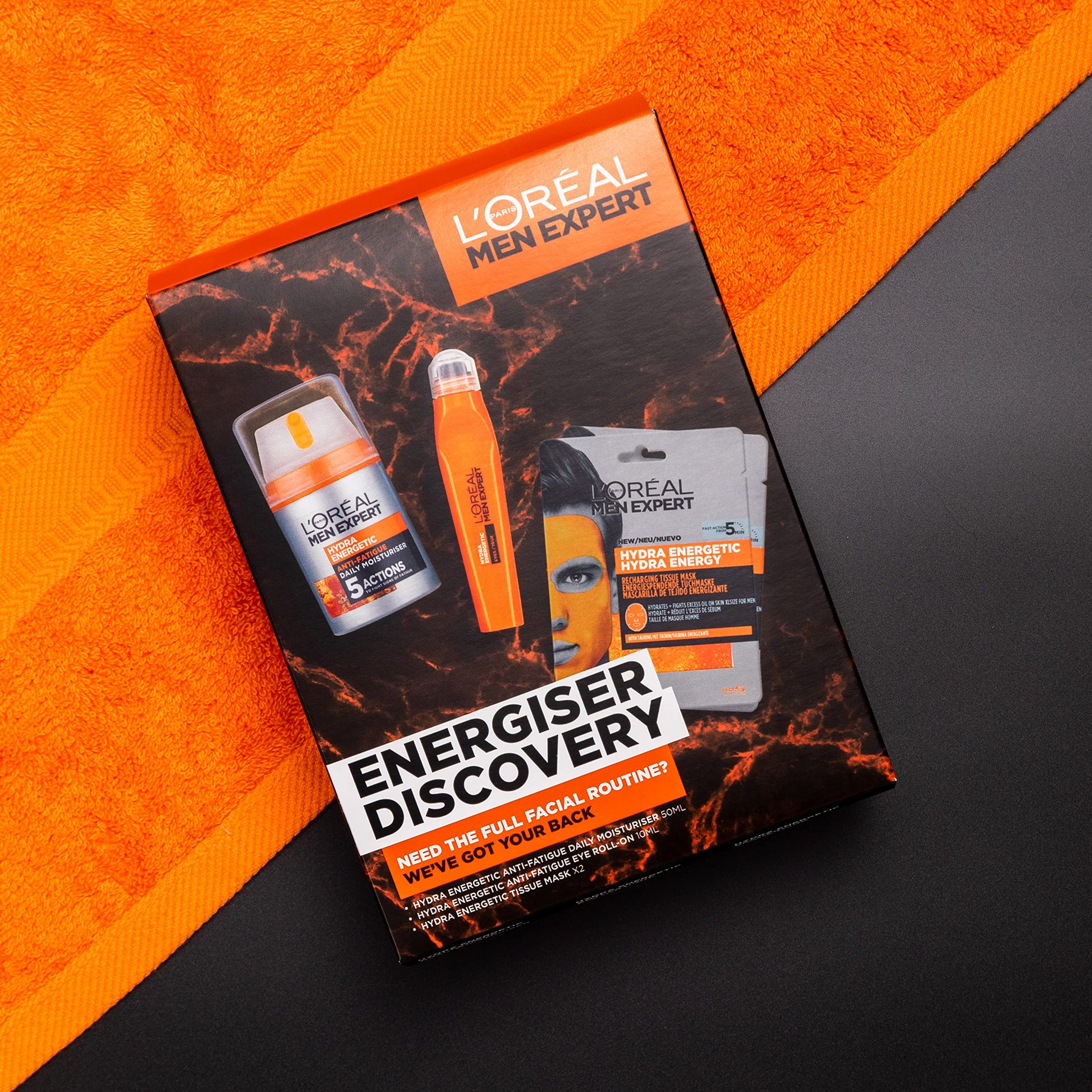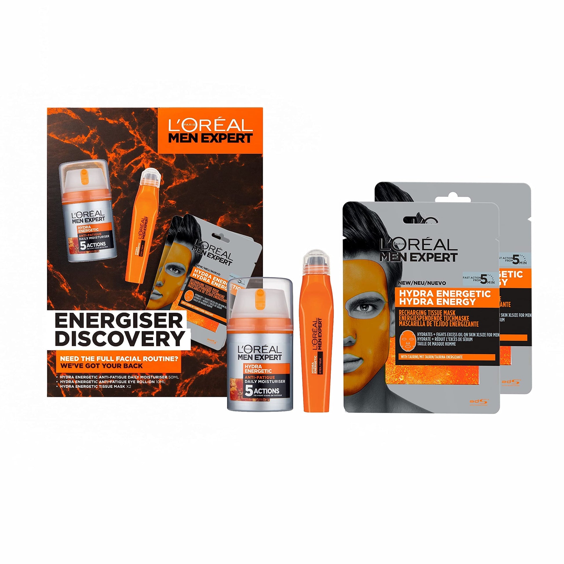 L'Oreal Men Expert L’Oreal Men Expert Energiser Discovery Gift Set, Men’s Skincare Gift For Him Featuring: Hydra Energetic Vitamin C Anti-Fatigue Moisturiser [50ml], Anti-Fatigue Eye Roll-On [10ml] and Sheet Mask x2