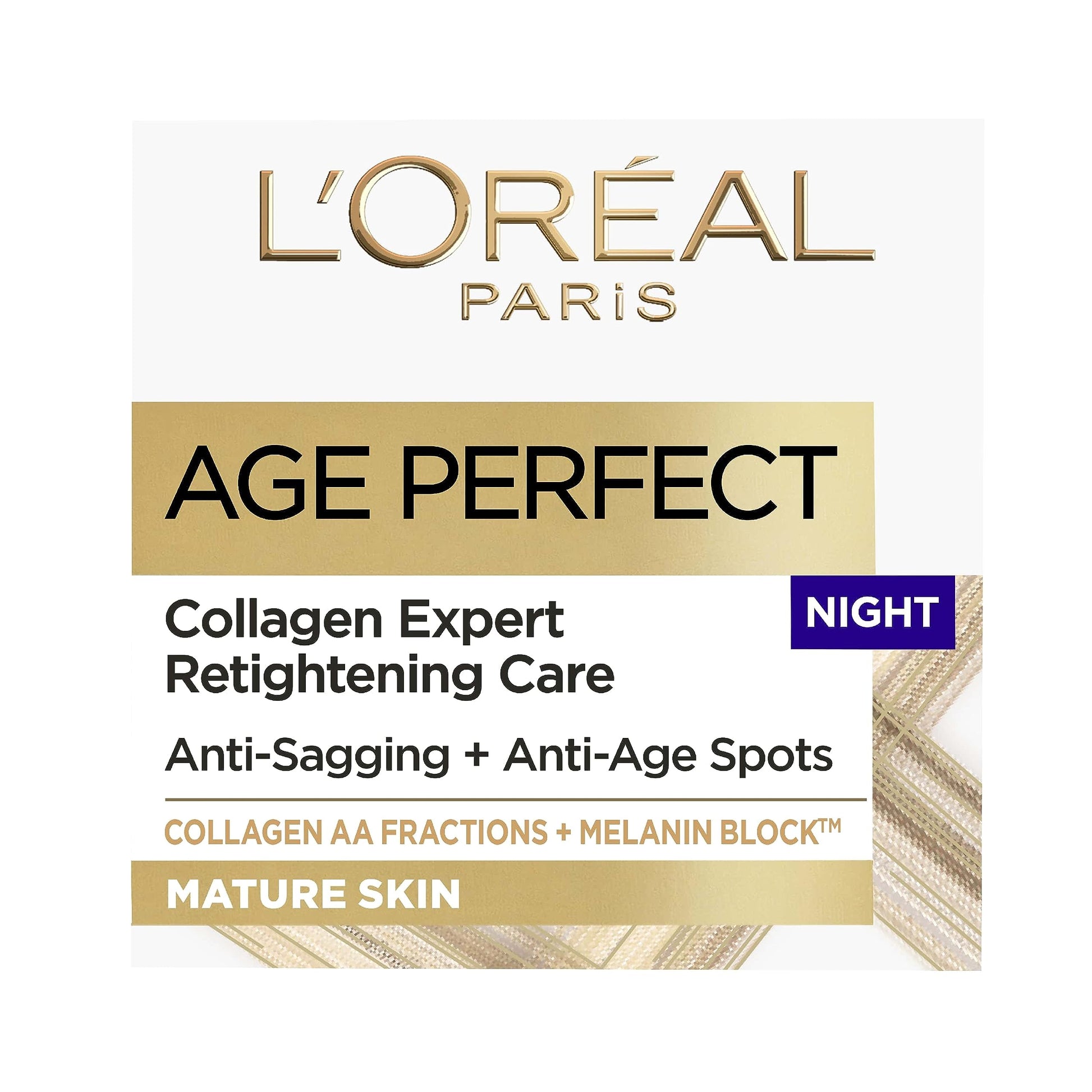 L'Oreal Paris Age Perfect Collagen Expert Retightening Care Night Cream, Anti-Sagging Plus Anti Age Spots Night Moisturiser Cream Targets Age Spots 50 ml