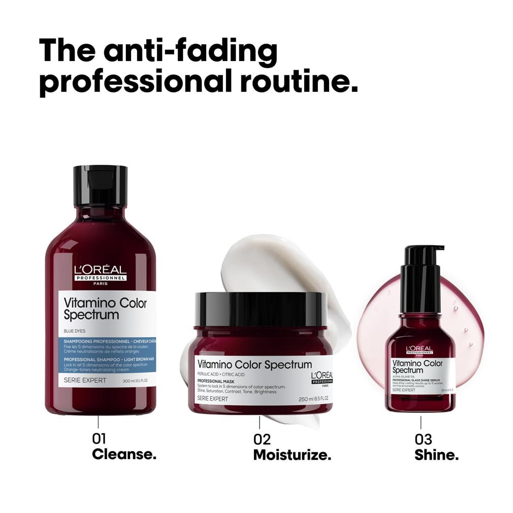 L'Oréal Professionnel Vitamino Color Spectrum Blue Tinted Shampoo 300ml, For Light Brown Coloured Hair, With Ferulic Acid + Citric Acid, Neutralise Undesired Orange Undertones