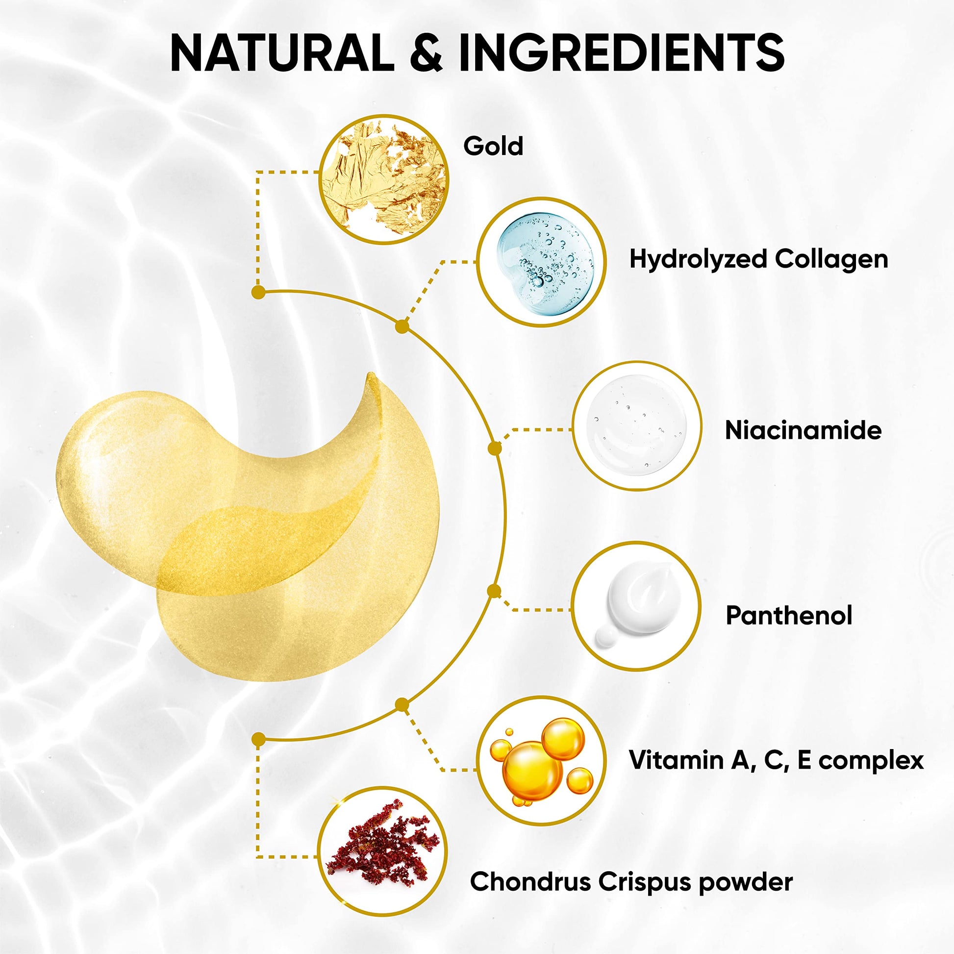 Lorelis Lab 24k Gold Eye Masks for Puffy Eyes and Dark Circles - Anti-Aging, Moisturizing Effect - Under Eye Patches with Collagen, Hyaluronic Acid for Eye Bags, Fine Lines, Wrinkles - Under Eye Masks, 30 Pairs