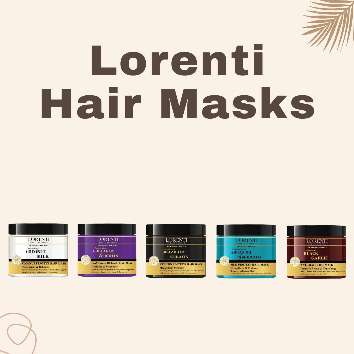 Lorenti Deep Conditioning Hair Mask 500 ml | For Dry, Damaged, Dense & Frizzed Hair | Contains Vitamin B7 & Proteins to Balance & Moisturize Hair | 16.9 Fl Oz (Black Garlic)