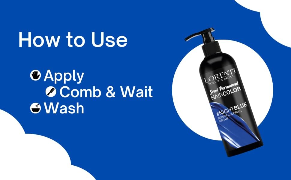 Lorenti Semi Permanent Direct Coloring Cream | Long Lasting Hair Colour Result | Night Blue 250 ml