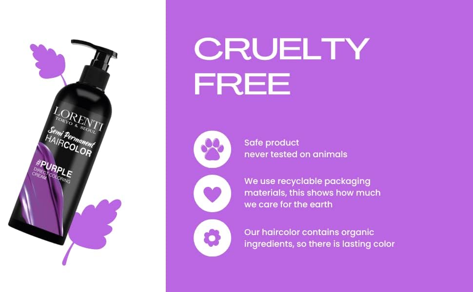 Lorenti Semi Permanent Direct Coloring Cream | Long Lasting Hair Colour Result | Purple 250ml
