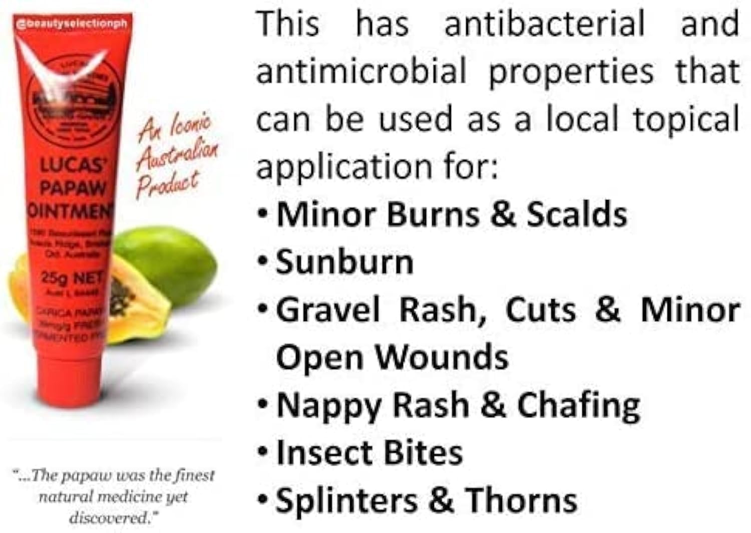 Lucas Papaw 25g is a versatile, all-natural ointment that has been a staple in Australian households for over 100 years. Made from 100% pure papaya, this ointment is a natural source of enzymes that helps to soothe and moisturize the skin.