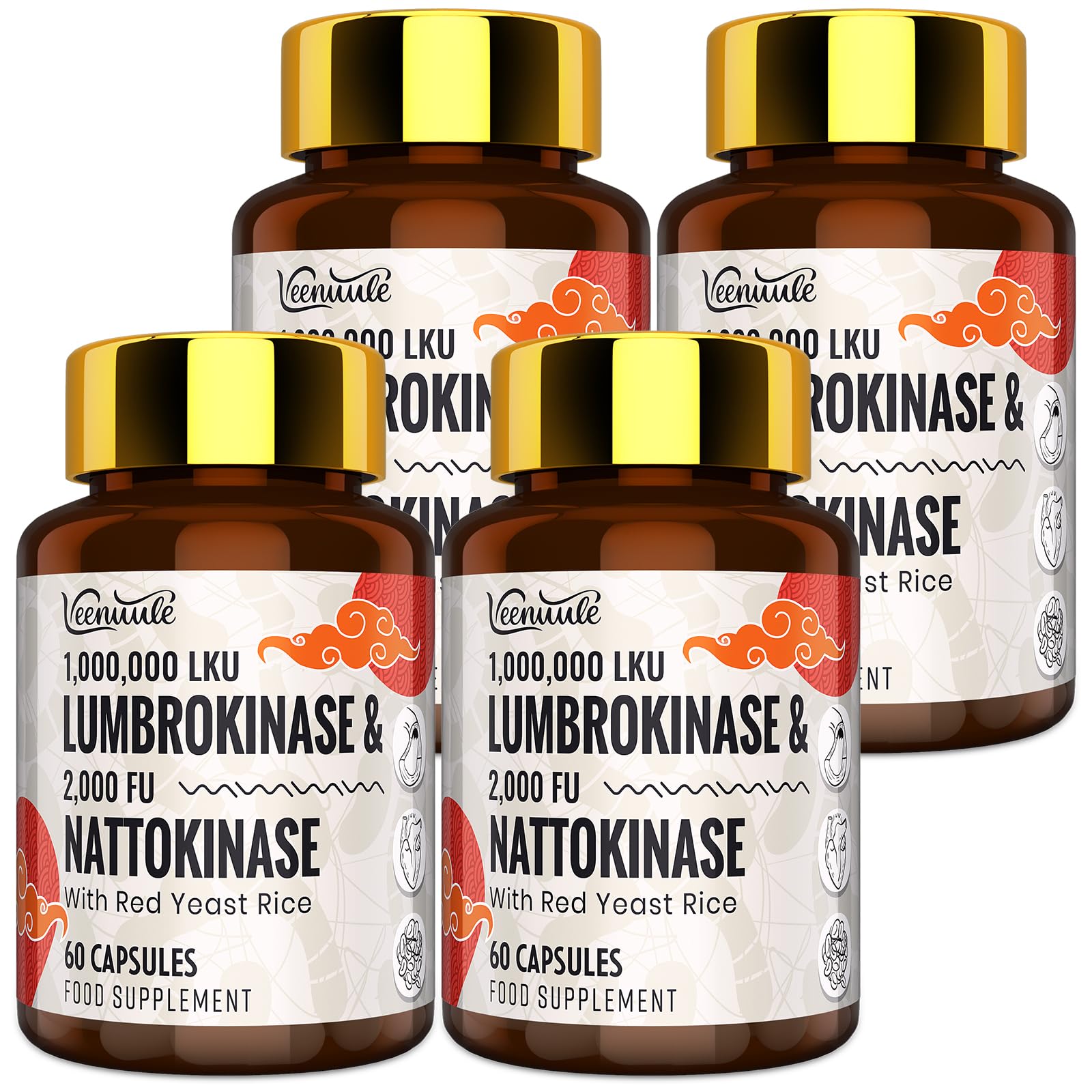 Lumbrokinase Supplement 100mg │ Maximum Activity - 1,000,000 LKU │ Lumbrokinase Capsules with Nattokinase 100mg 2000 FU for Blood Circulation and Cardiovascular Health, 240 Capsules