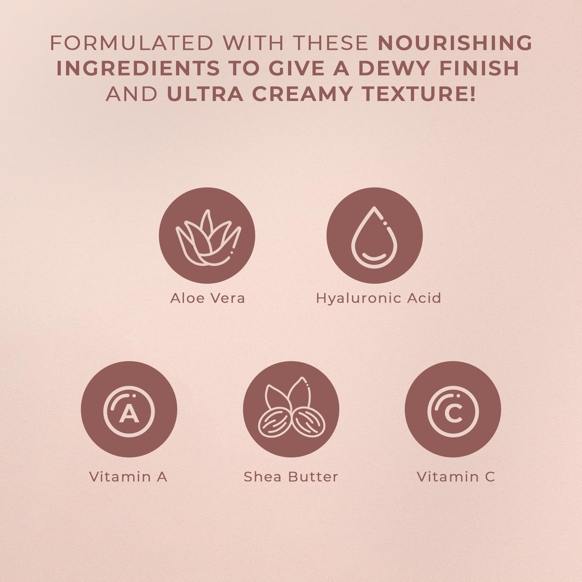 - HYDRATION POWERSHOUSE - Infused with Hyaluronic Acid, Vitamin A & C, Aloe Vera, and Shea Butter, our foundation for mature skin is more than just makeup. It's a hydrating elixir that quenches your skin's thirst, providing a surge of moisture and nourishment.