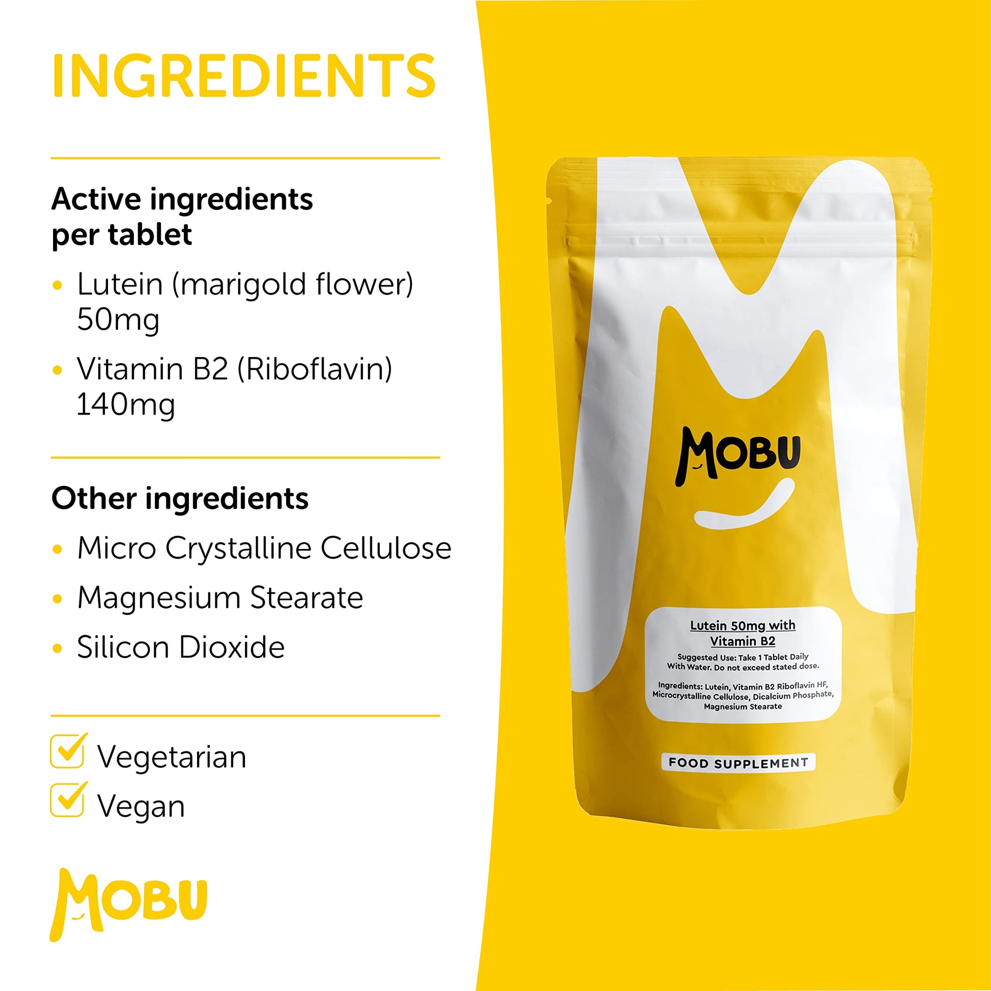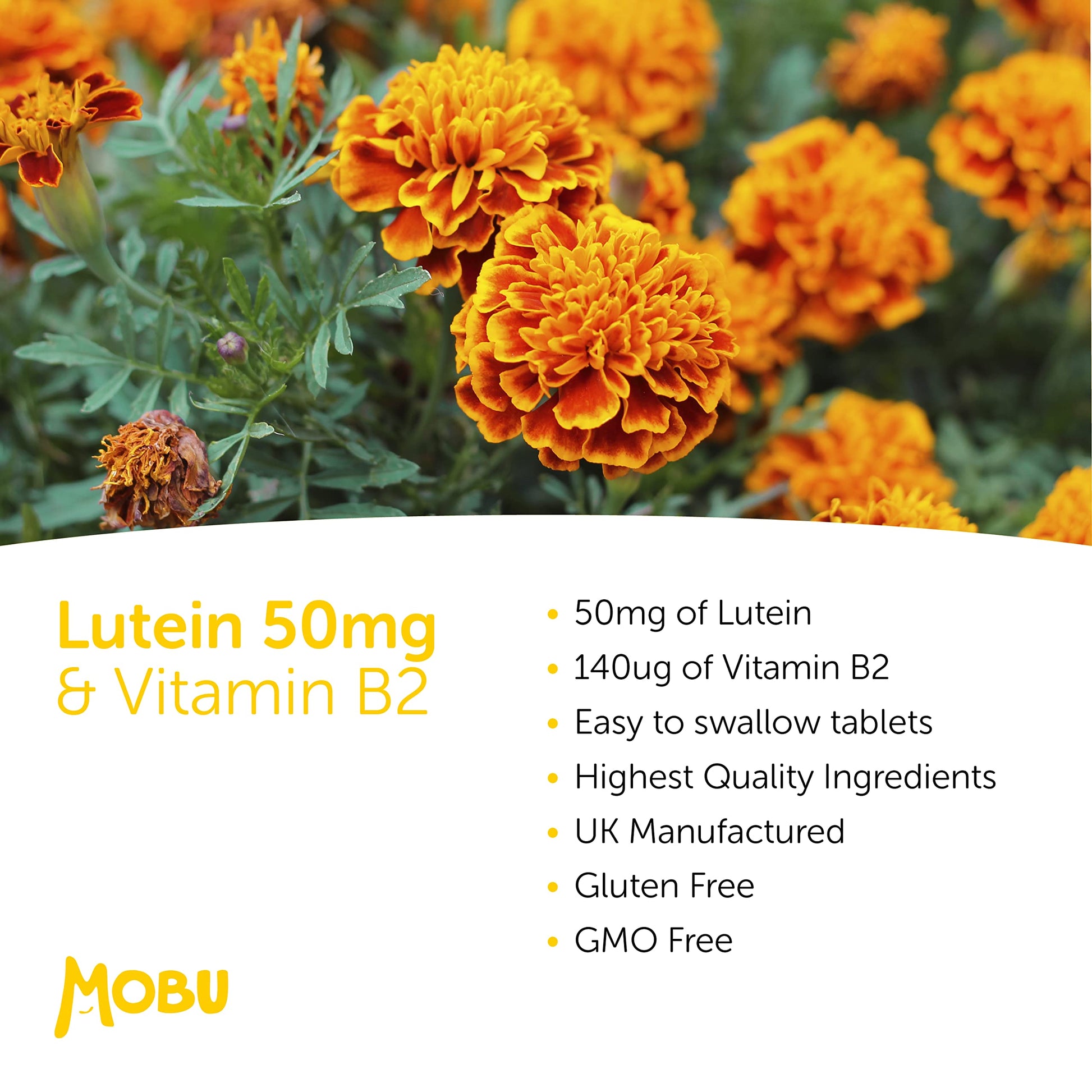 Lutein 50mg and Vitamin B2 | 120 Tablets | Vision Support | Eye Care Supplement | Eye Vitamins | Vegan GMP Approved | MOBU UK