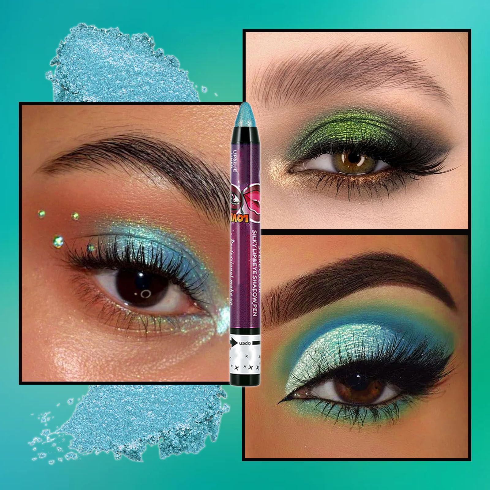 LYNTYAOU Peacock Green Pearl Shimmer Eyeshadow Stick, Blue Color Cream Eye Shadow, Metallic Glitter Eyeshadows, Pearlescent Highlight Pencil Crayon Brightener Pen, Smooth High Pigmented Eyeliner