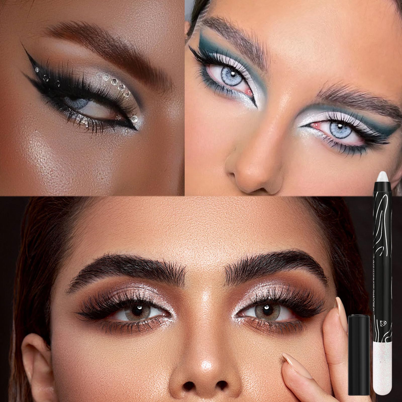 Pearl White Eyeshadow Stick - Our pearlescent white eyeshadow crayon blends highly pigmented color and glitter seamlessly, making it ideal for creating a range of looks from smoky and sultry to glowing and metallic. It ensures you stand out no matter the occasion.High quality material Pen - Crafted with a high-quality formula that includes gentle ingredients, the eyeshadow stick is smooth and easy to apply. The color is rich and long-lasting, giving you the confidence to create a natural and beautiful eye makeup look.