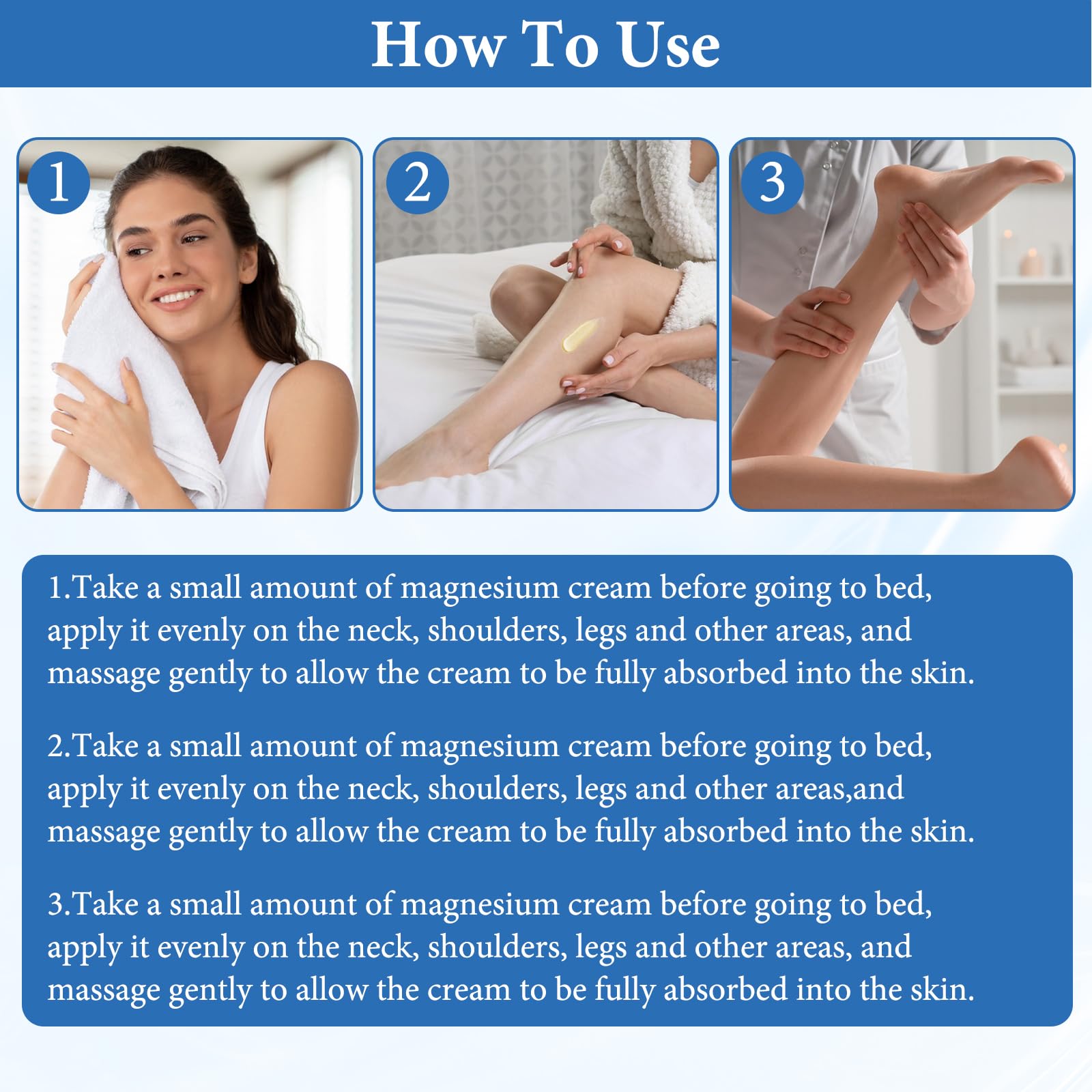 The ingredients are safe, gentle, and easily absorbed by the skin. Magnesium cream for muscles helps improve sleep and improve the quality of life.