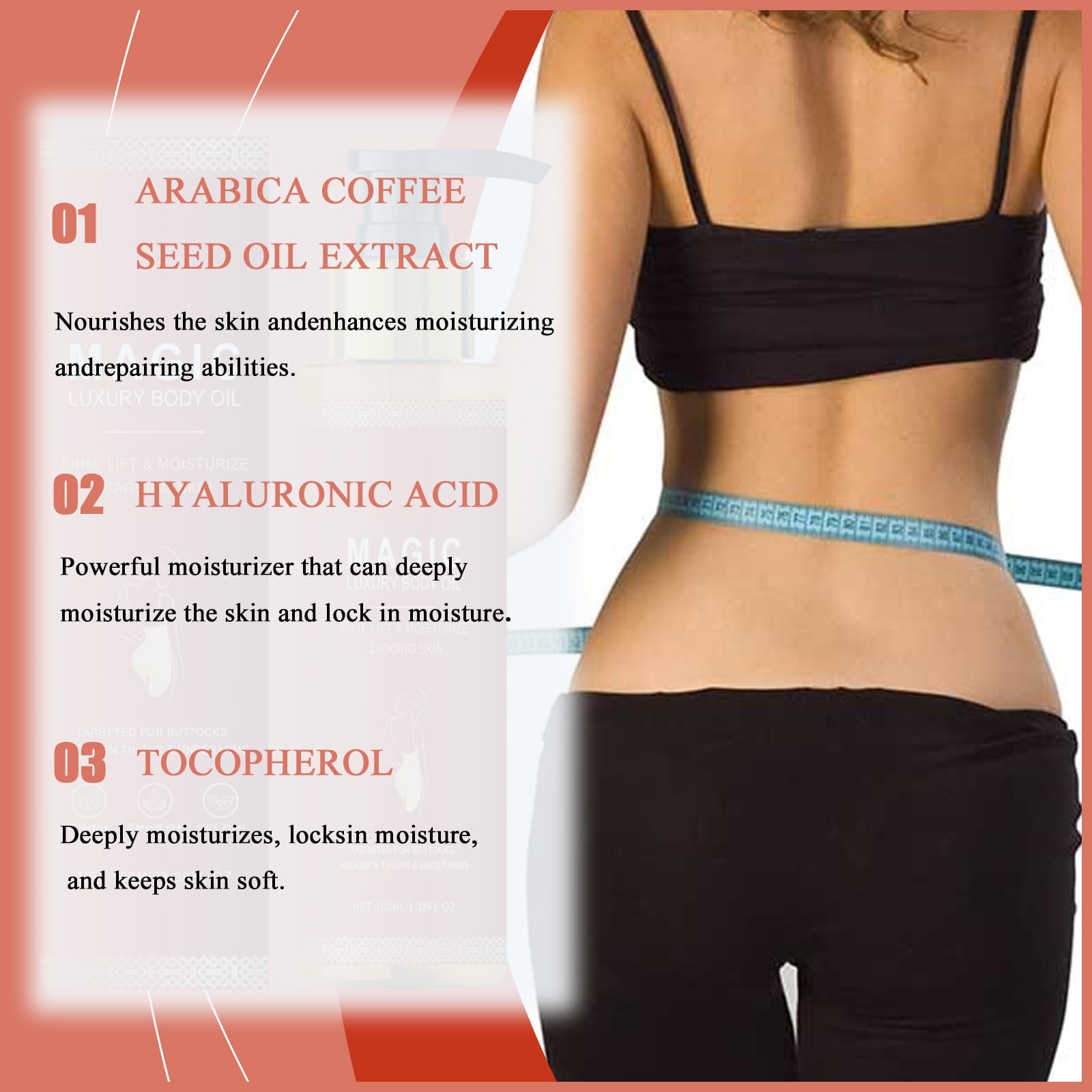 Magic Luxury Body Oil for Women, Firming Body Oil with Squalane and Rose Hip, Silken Tightening Oil for Smooth Glowing Skin, Natural Moisturizing Dry Skin Care, 100ML