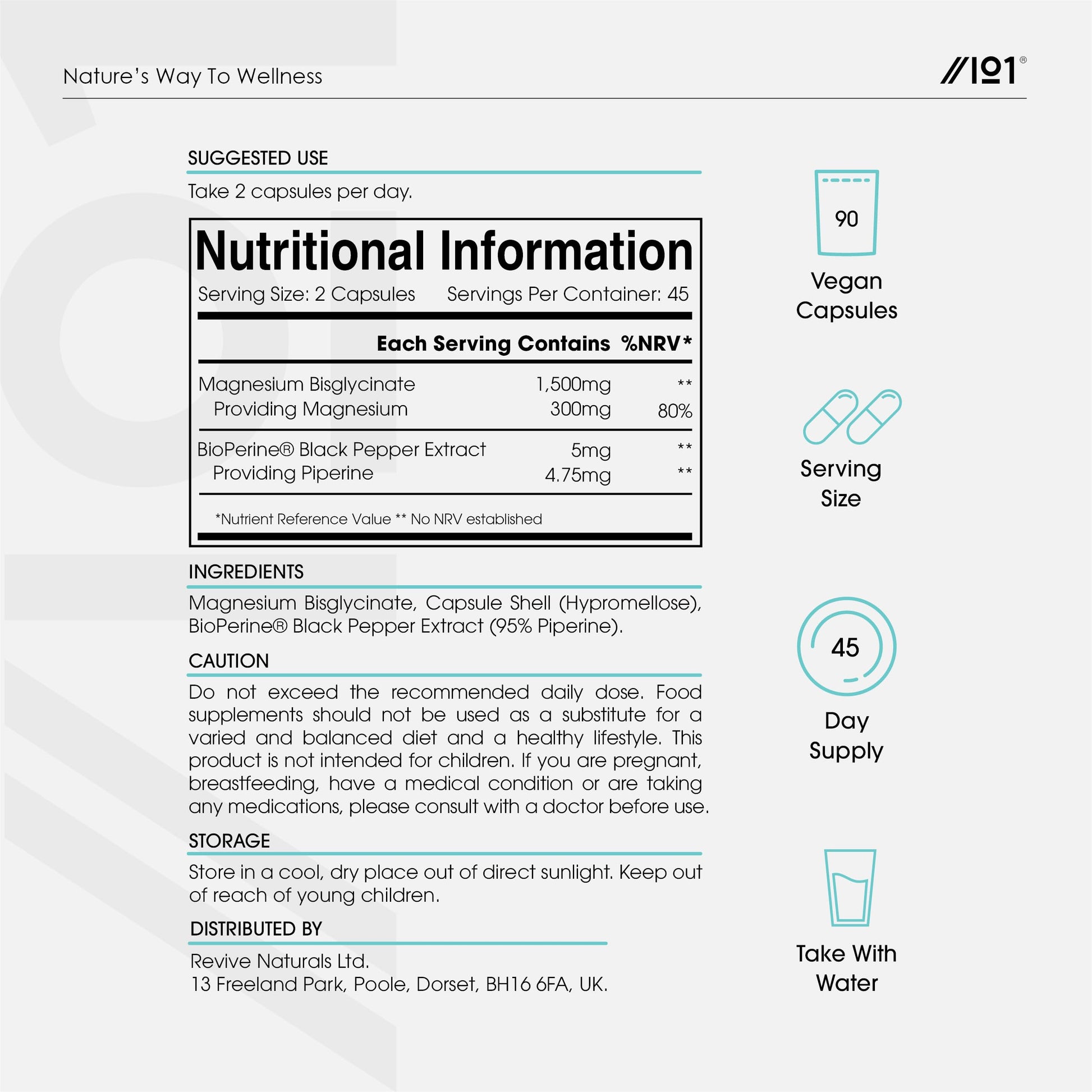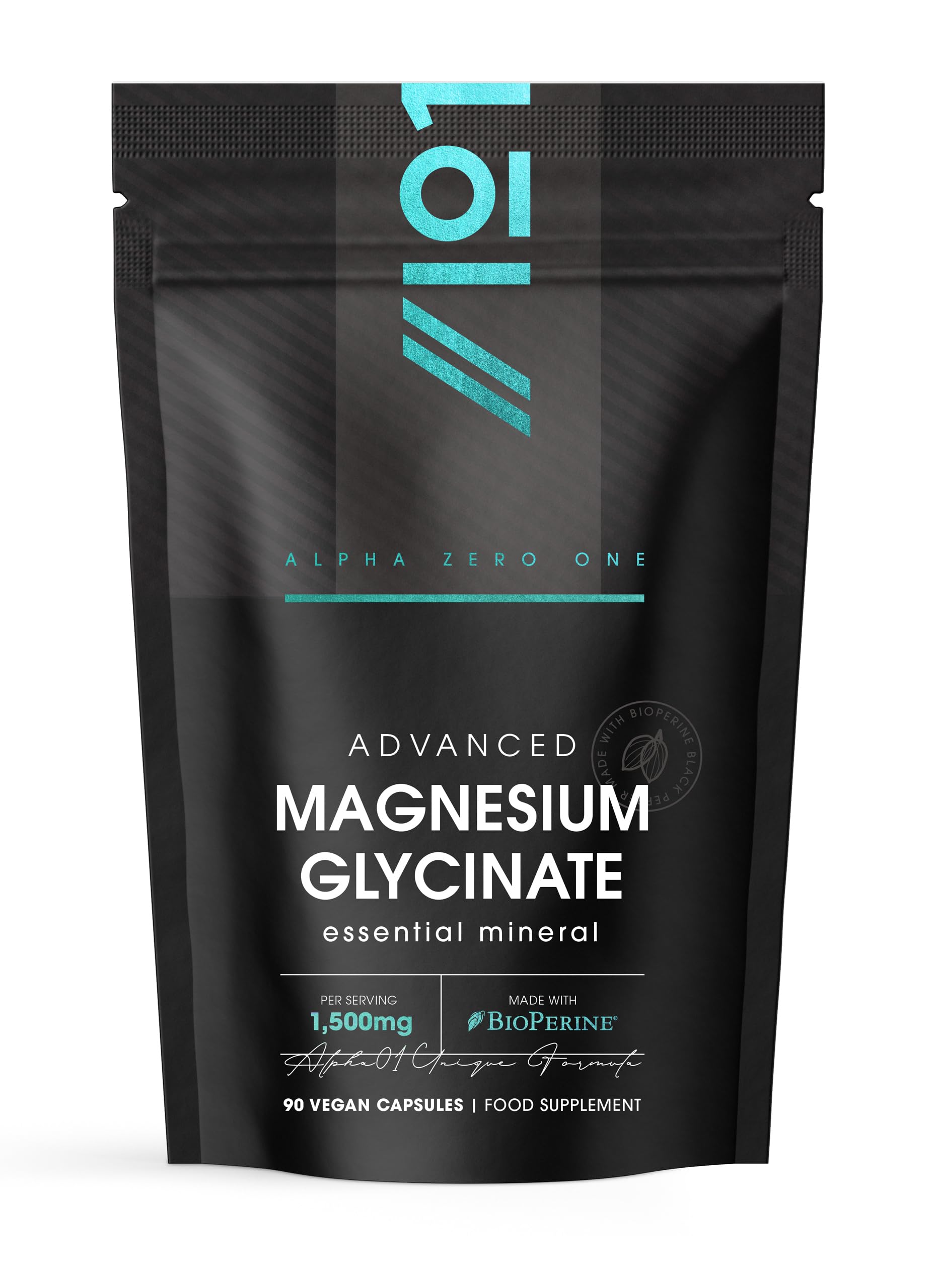 Magnesium Glycinate 1500mg with BioPerine® – Supports The Nervous System - Reduces Tiredness and Fatigue - 90 Vegan Capsules (45 Days Supply) - Resealable and Recyclable Pouch - by Alpha01
