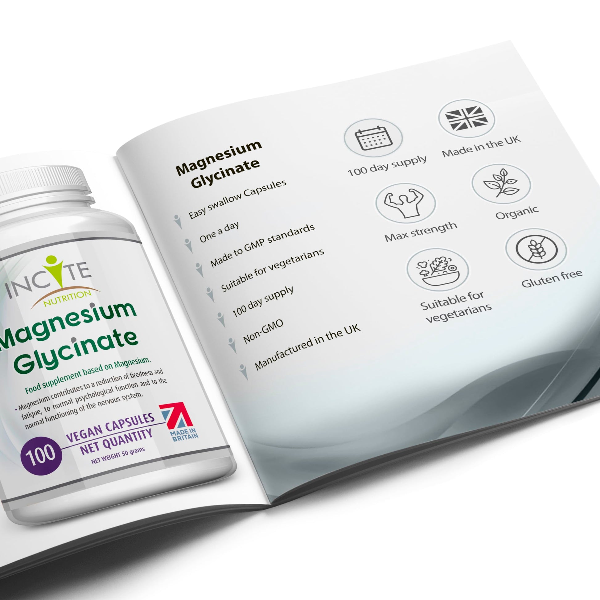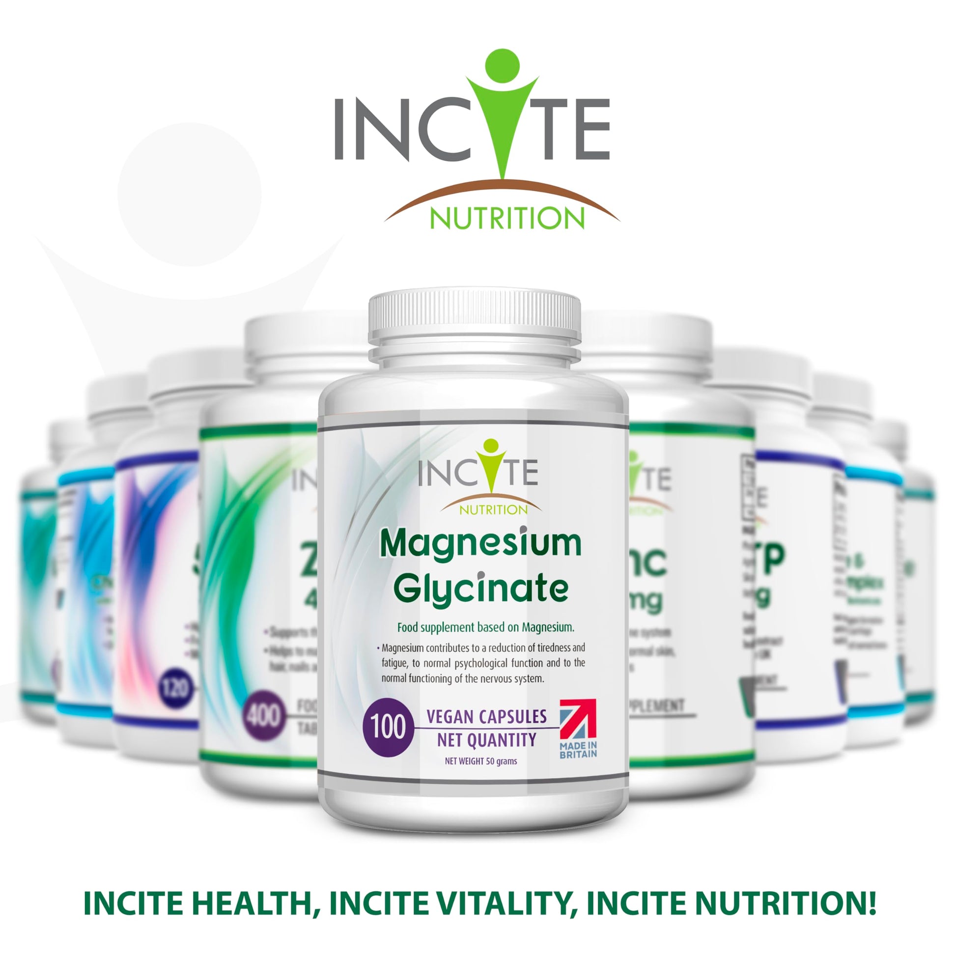 Incite Nutrition's Magnesium Glycinate offers 100 easy to swallow vegan tablets that will last you 3 months. Our incredible 100 tablet pack gives amazing value keeping you replenished with a high level of Magnesium Glycinate for 3 months. Our Magnesium Glycinate is vegan friendly. Our Magnesium Glycinate high strength Supplements are made and manufactured in the UK with Premium Ingredients to the highest of standards.More Info