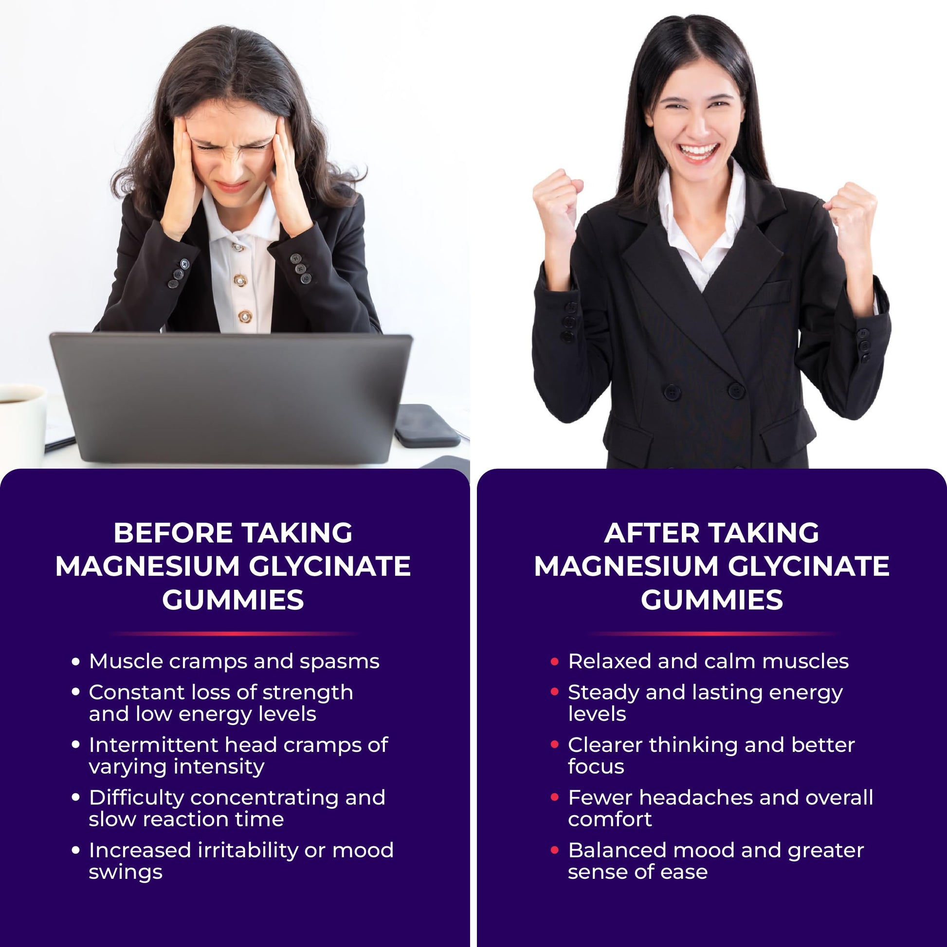 Each sugar-free gummy delivers 400mg of magnesium glycinate and 200mg of magnesium malate—two gentle, high-absorption forms that are easy on the stomach and ideal for long-term use. We've also included calcium, zinc, taurine, vitamin D3, and vitamin B6 for a well-rounded formula that supports bone strength, energy, muscle recovery, and immune health.