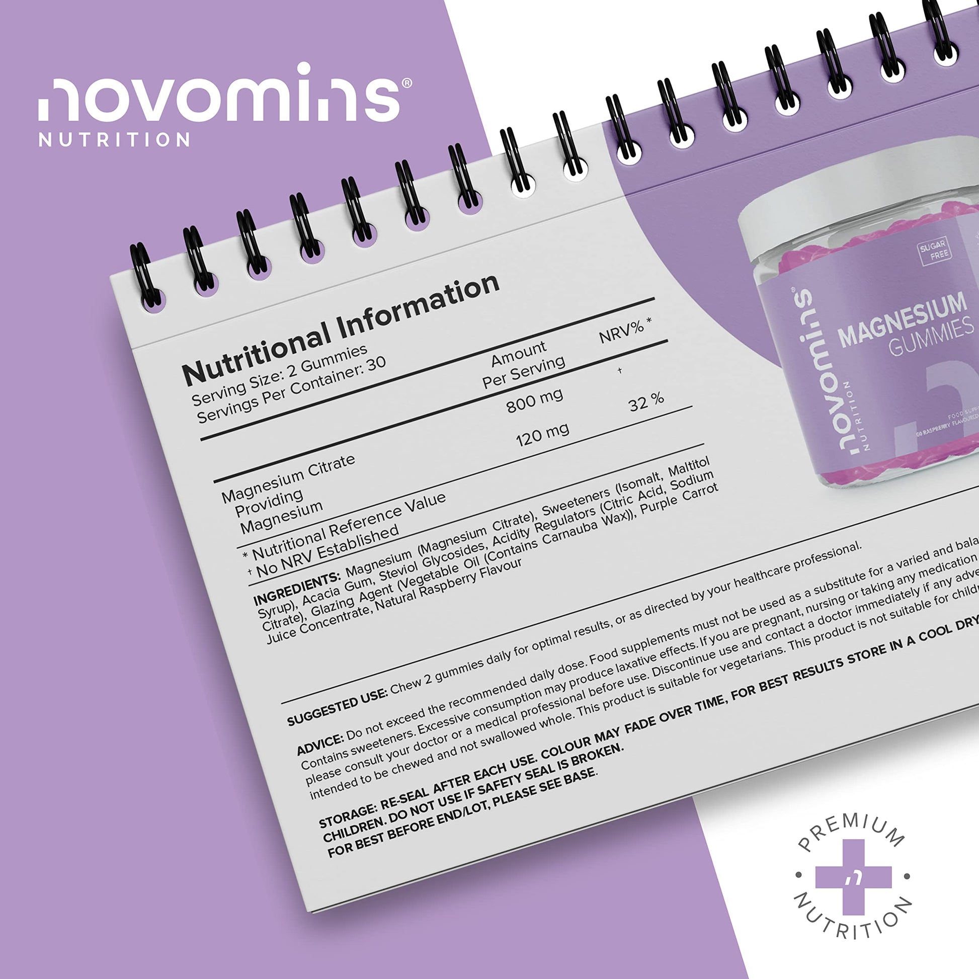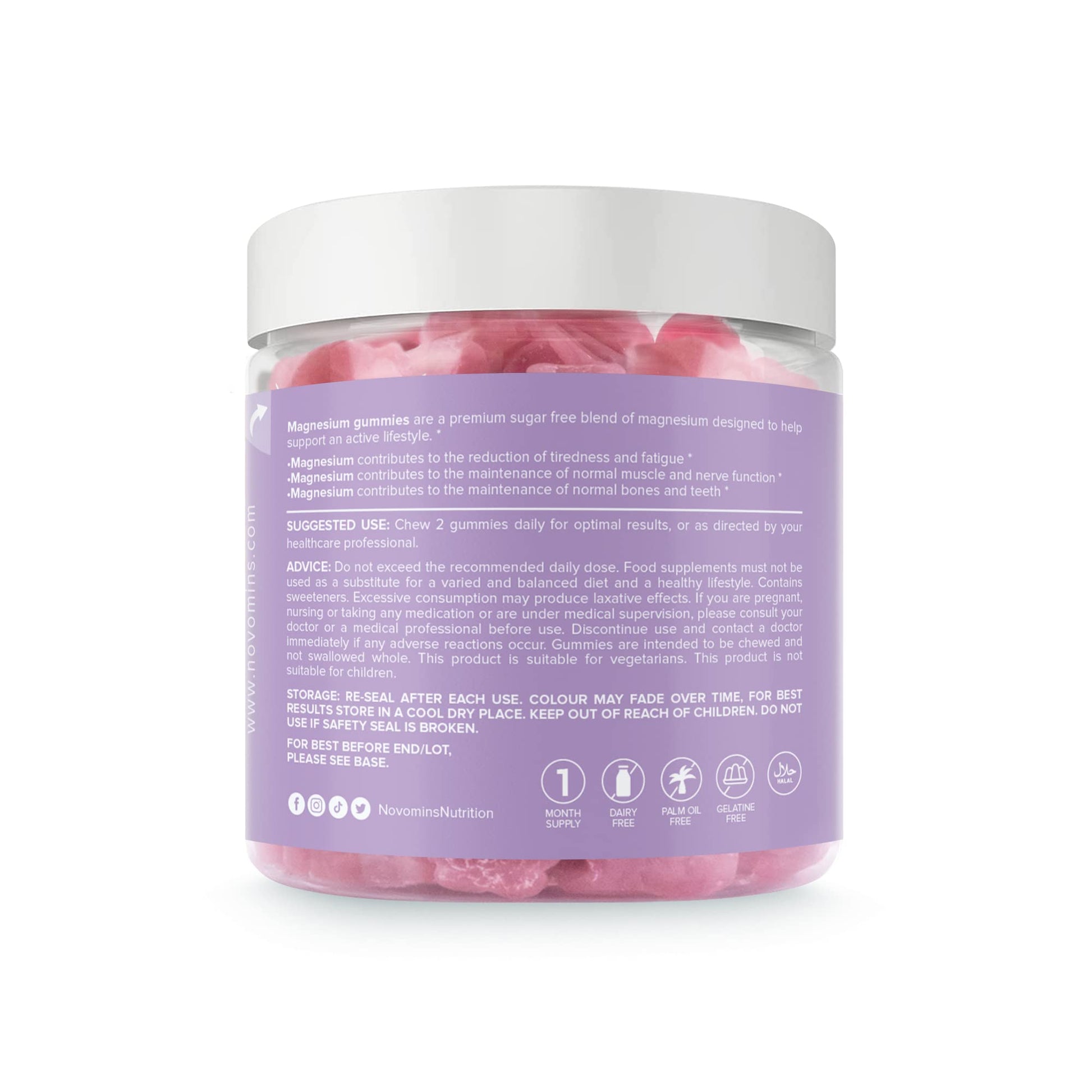 Magnesium Gummies – Sugar Free - Vegan – 1 Month Supply - Gluten Free - Chewable Magnesium Supplements – 1091 mg Magnesium Citrate Providing 120mg of Magnesium - Made by Novomins