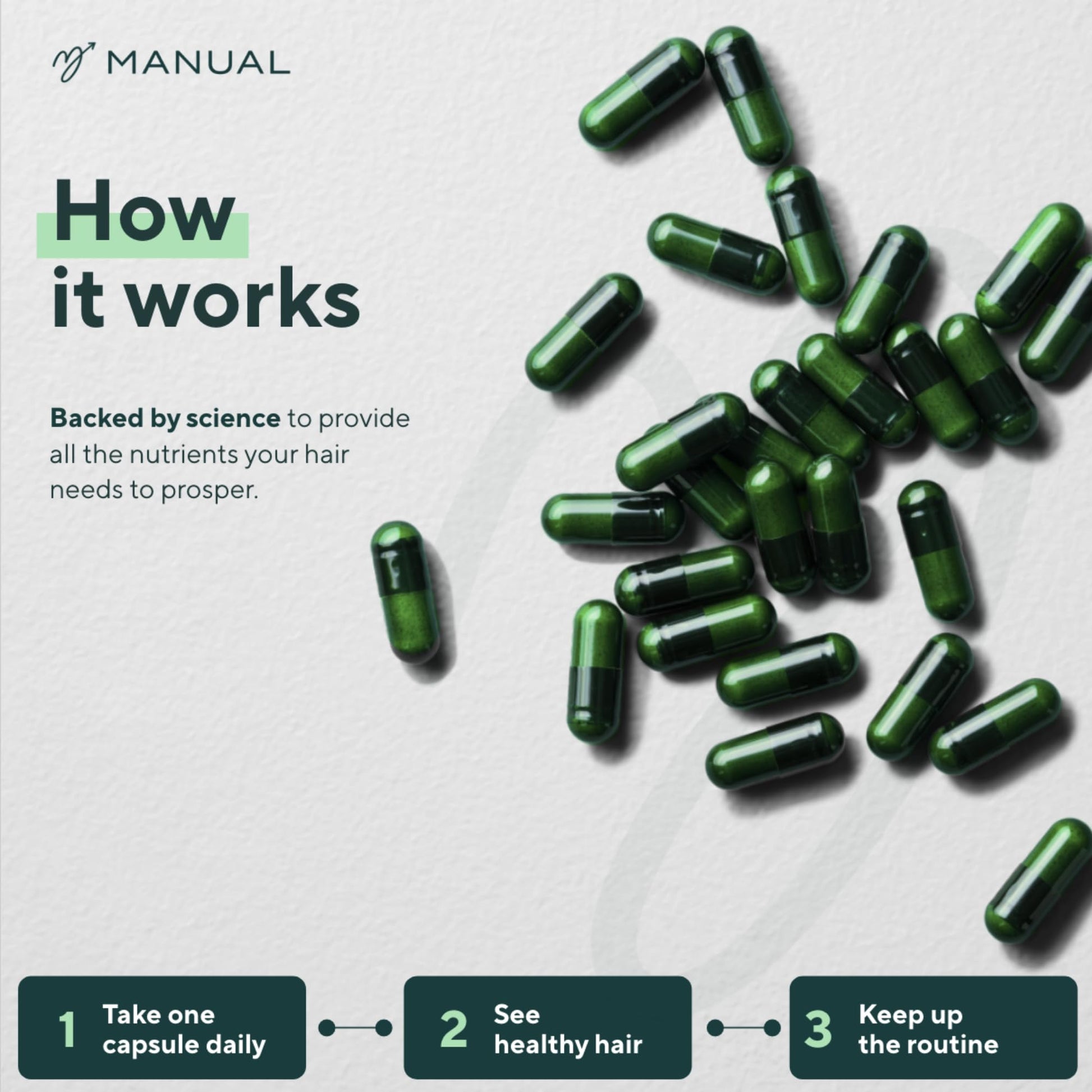 Manual Hair Growth Vitamin Supplements (90 Capsules) - for Thicker & Healthier Hair - with Multiple Vitamins Including Biotin & Collagen - for Hair Loss & Thinning - Take 1 Daily - 3 Month Supply