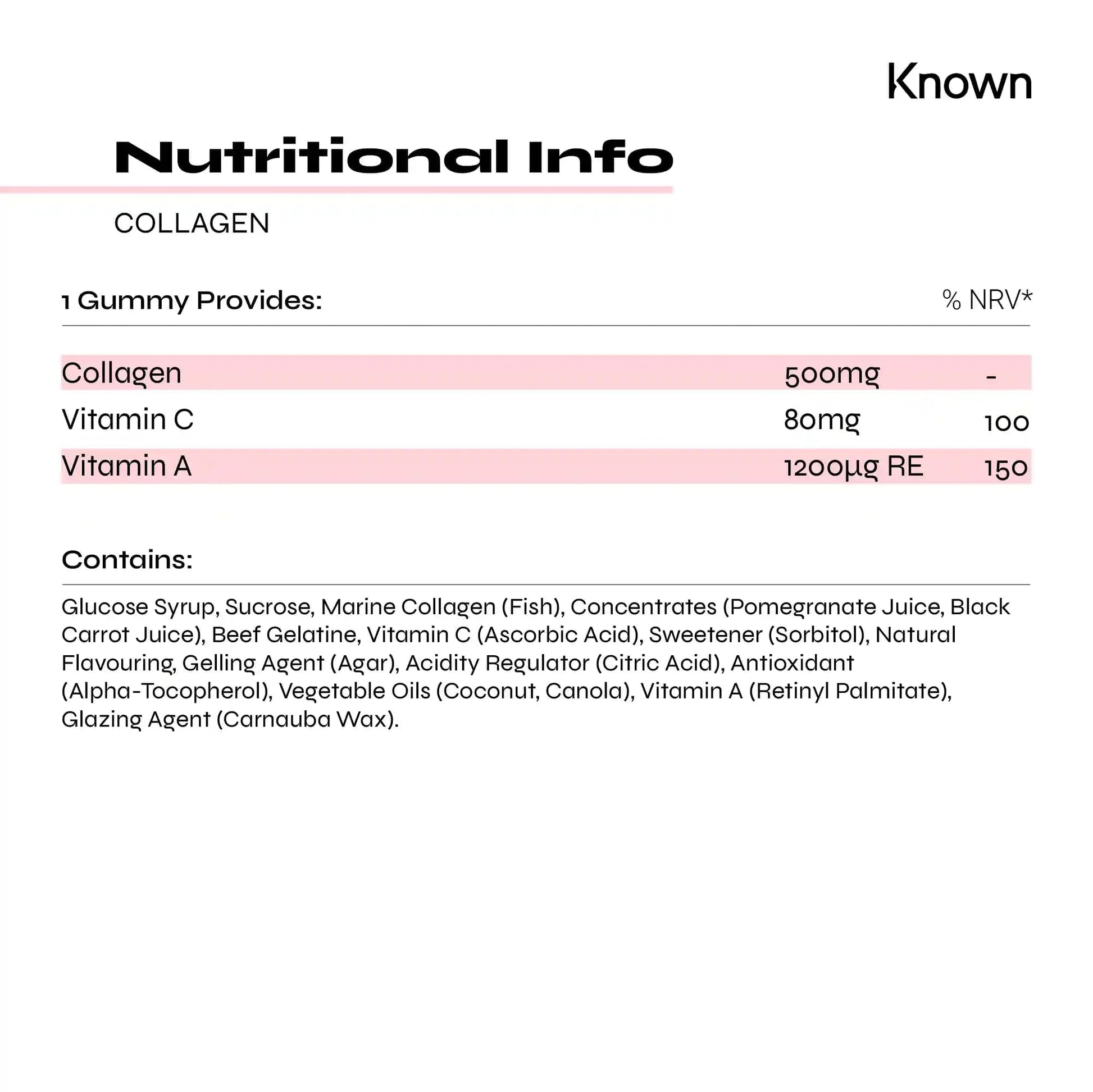 Marine Collagen Gummies by Known Nutrition with Vitamin C | 60 One-a-Day 500mg Hydrolysed Marine Collagen Gummies | Supporting Hair, Skin & Nails | Pomegranate Flavour (1)