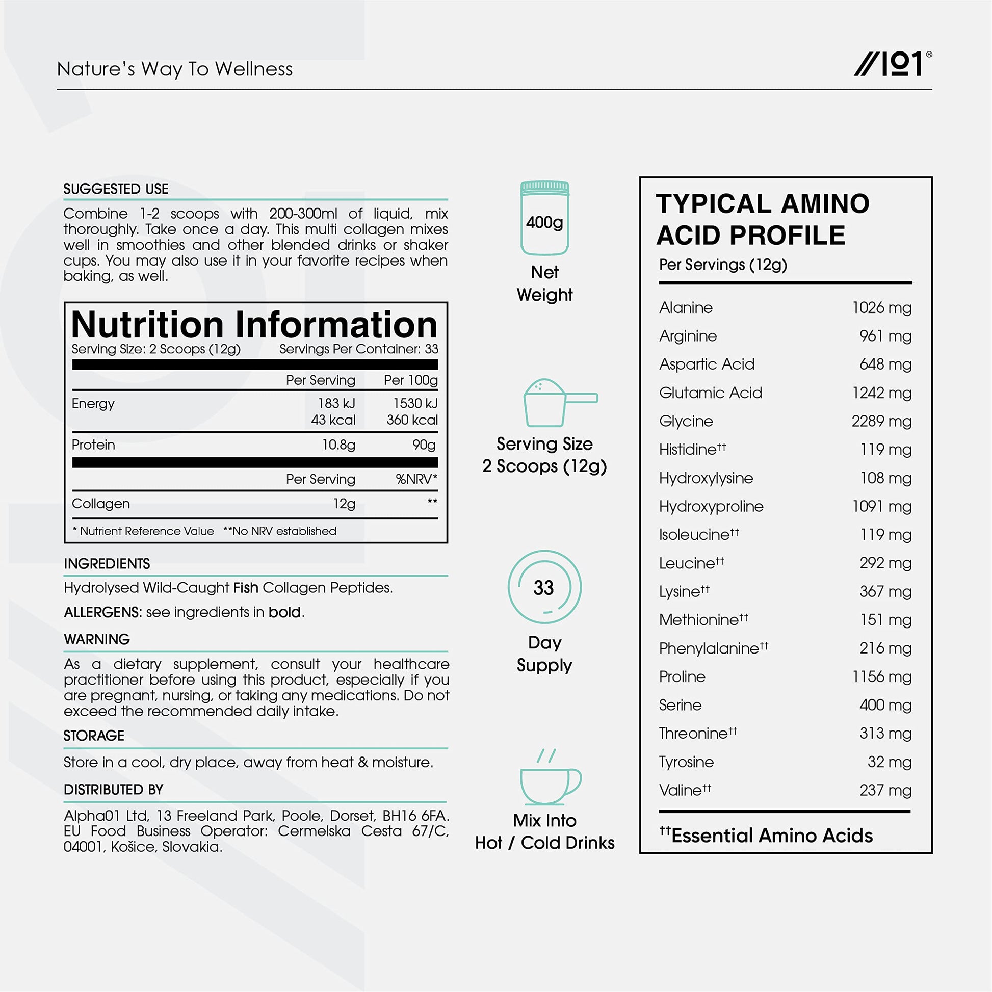 Marine Collagen Powder Supplement - Wild-Caught Canadian Marine Collagen - Unflavoured - Types 1 & 3 Collagen Peptides - Hydrolysed Deep Ocean Canadian Source. Non GMO, Gluten Free, Halal. 400g